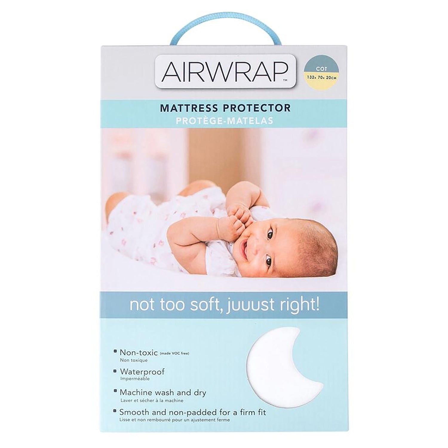 The Airwrap mattress protector has the right balance of features in a mattress protector for both baby and the mattress. 'Not too soft, juuust' right made with sleep surface firmness recommendations in mind. Free from padding and firm fitting to limit potential hazard if the baby turns over. Airwrap are the pioneers of making mattress protectors that are ''firm friendly' empowering parents to make a better choice.