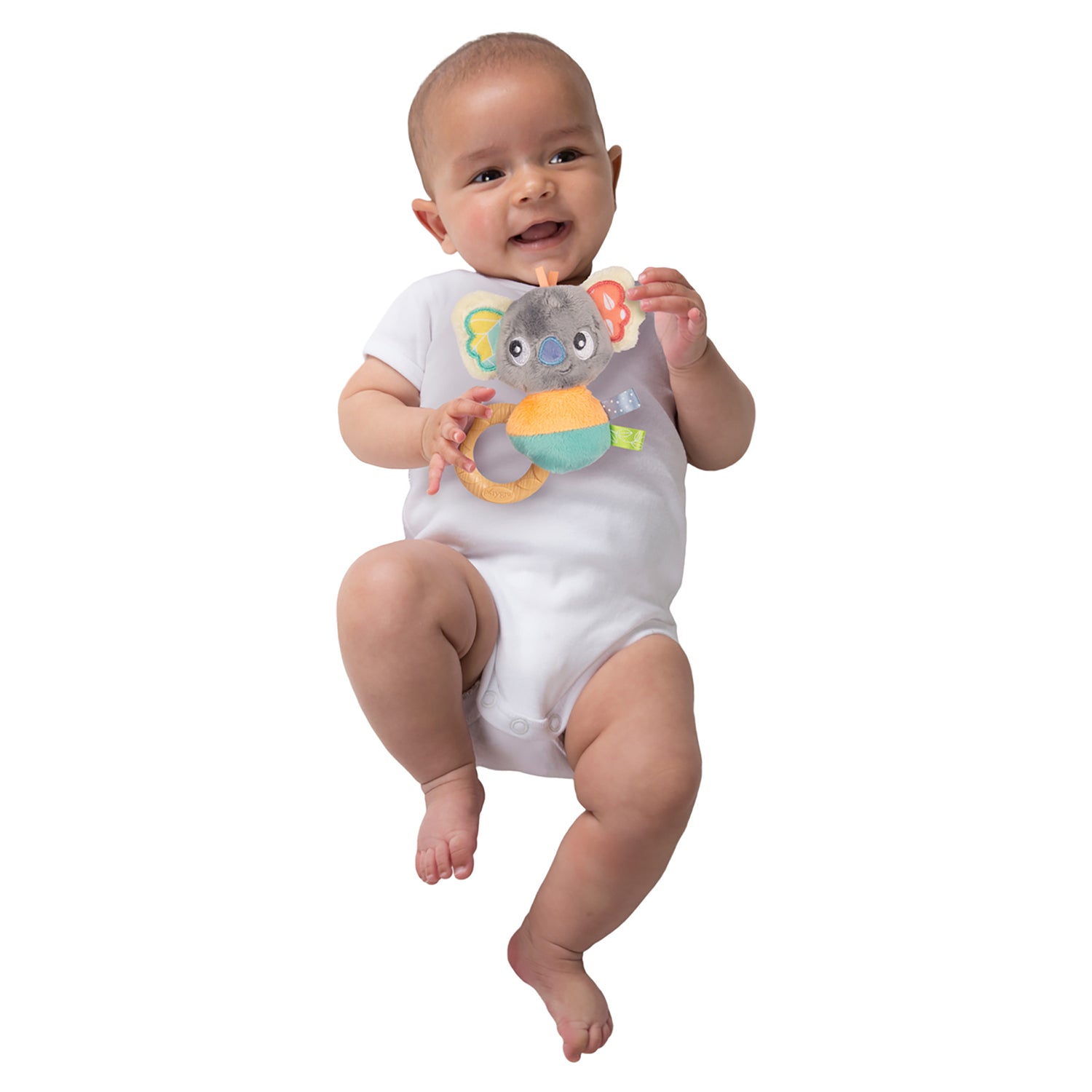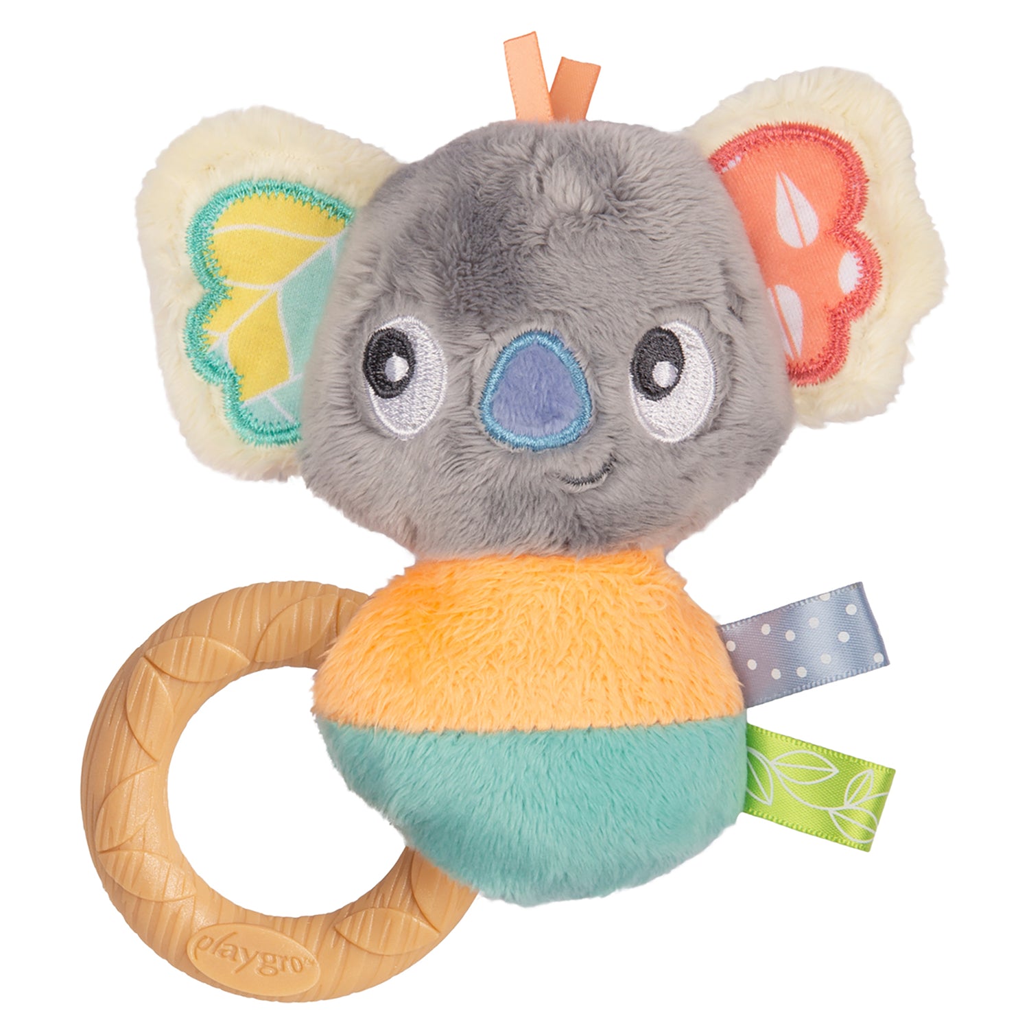 Perfectly designed for little hands and mouths, the adorable plush Koala with gentle rattle sounds clings to a texture teether ring that provides soothing counterpressure to sore gums and satisfies baby's instinct to explore with their mouth. Includes beautiful contemporary colours to stimulate baby's sight, super soft plush material and colourful ribbons to encourage grasping and tactile exploration. Mix and match with our stunning Playgro Home Fauna Friends range of nursery accessories and toys.Plush materials and tactile ribbons encourage grasping Textured teether loop invites baby to explore with their mouth Gentle rattle sounds stimulate listening skills Adorable Koala character introduces Australian animals to baby Part of a coordinated range featuring soft contemporary colours and patterns inspired by Australian flora and fauna.