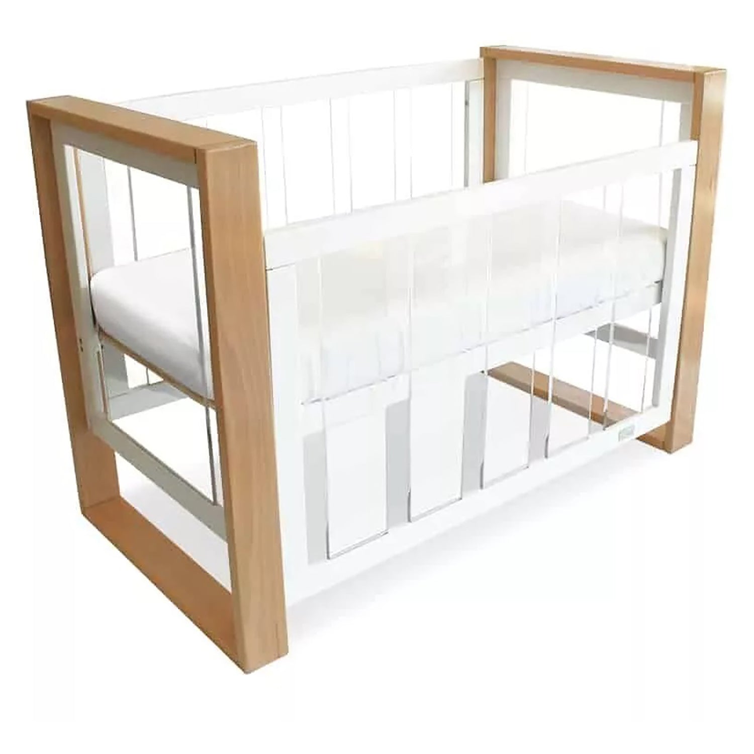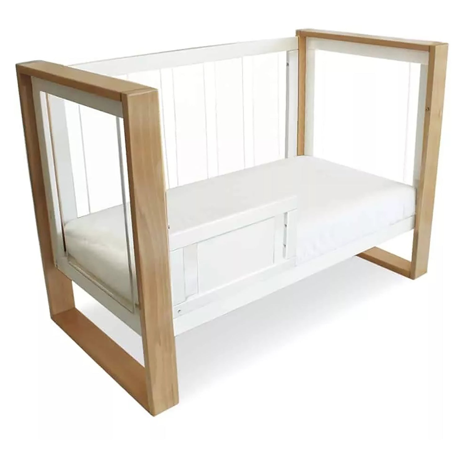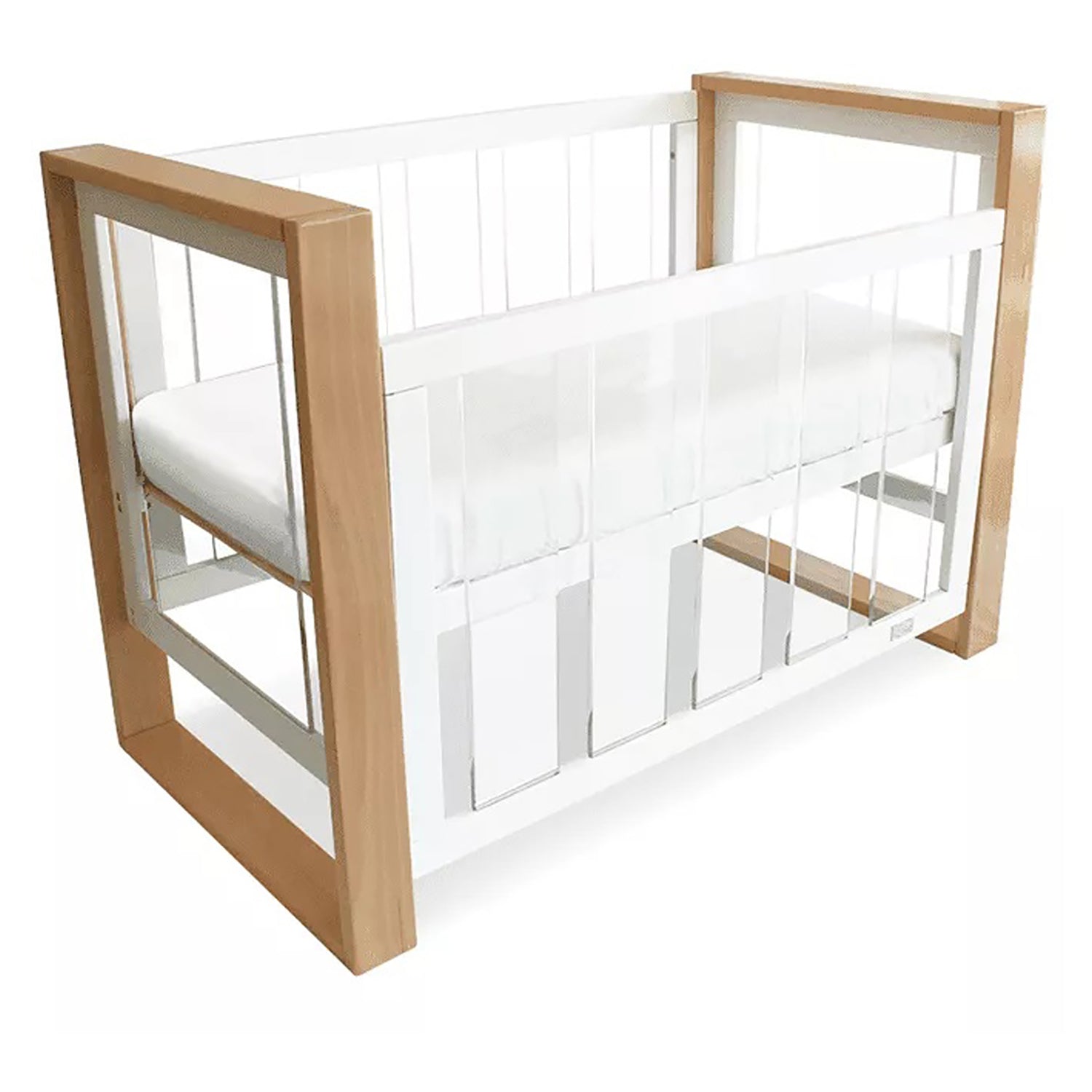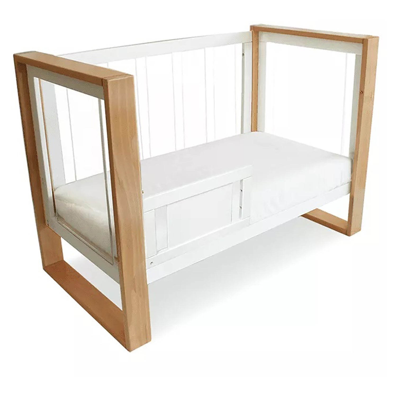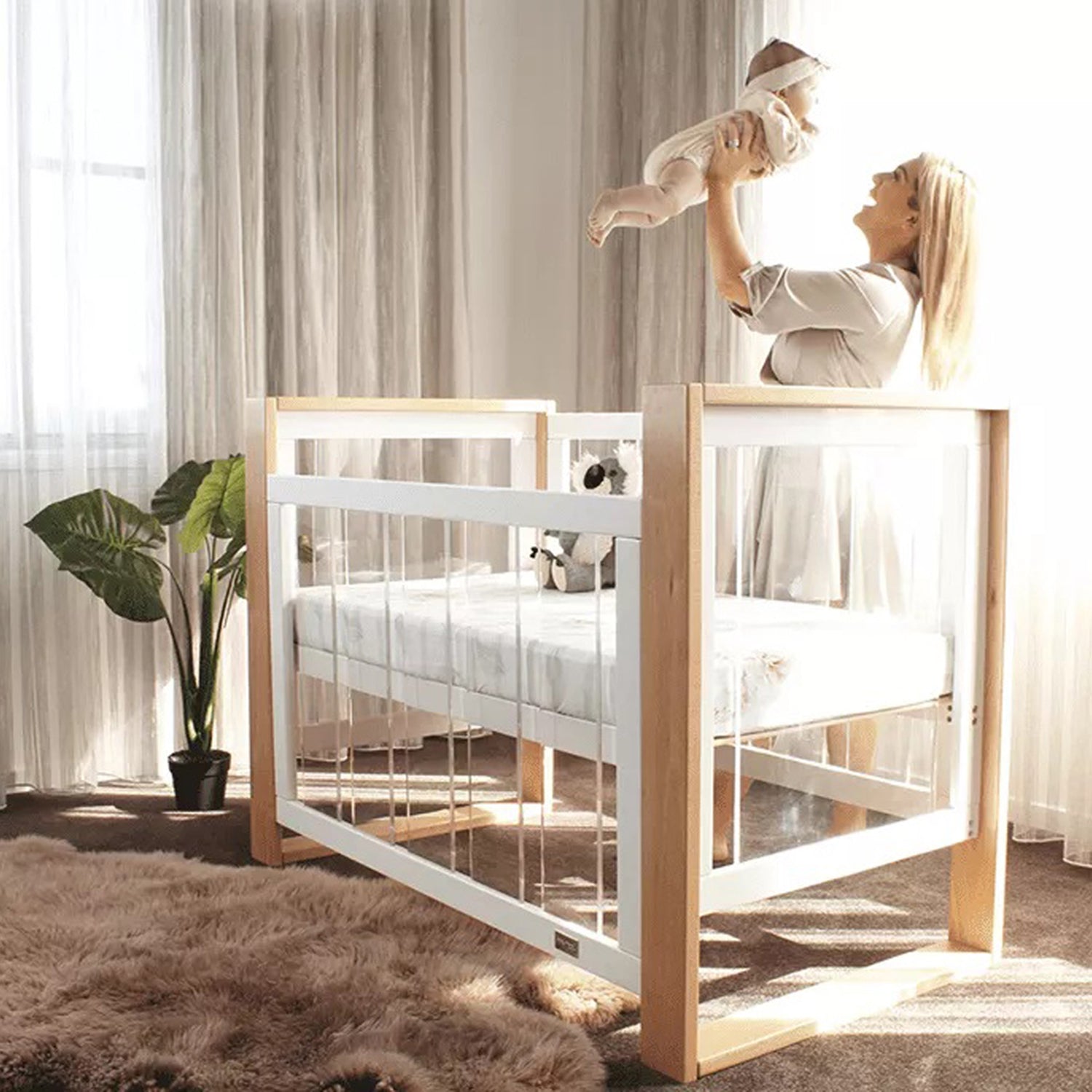 The Bella Cot makes your precious baby the star of the nursery as the cot is designed with acrylic panels to showcase your baby and is framed with a modern European beechwood accent on each end. A sleep space truly magical and filled with endless possibilities for stylish parents, wanting to create an extraordinary space for their baby - let your imagination run free with the endless possibilities this seamless space offers your inner creativity. Whilst Bella is a beautiful picture frame for your baby in their nursery, it continues to be functional for you with great Features: like babyhood's famous single hand drop side and a 2-level base adjustment. You know it is created with love as it continues to grow with your baby as it includes a toddler conversion kit, providing your baby with a safer transitioning space to a single bed and better value for you.