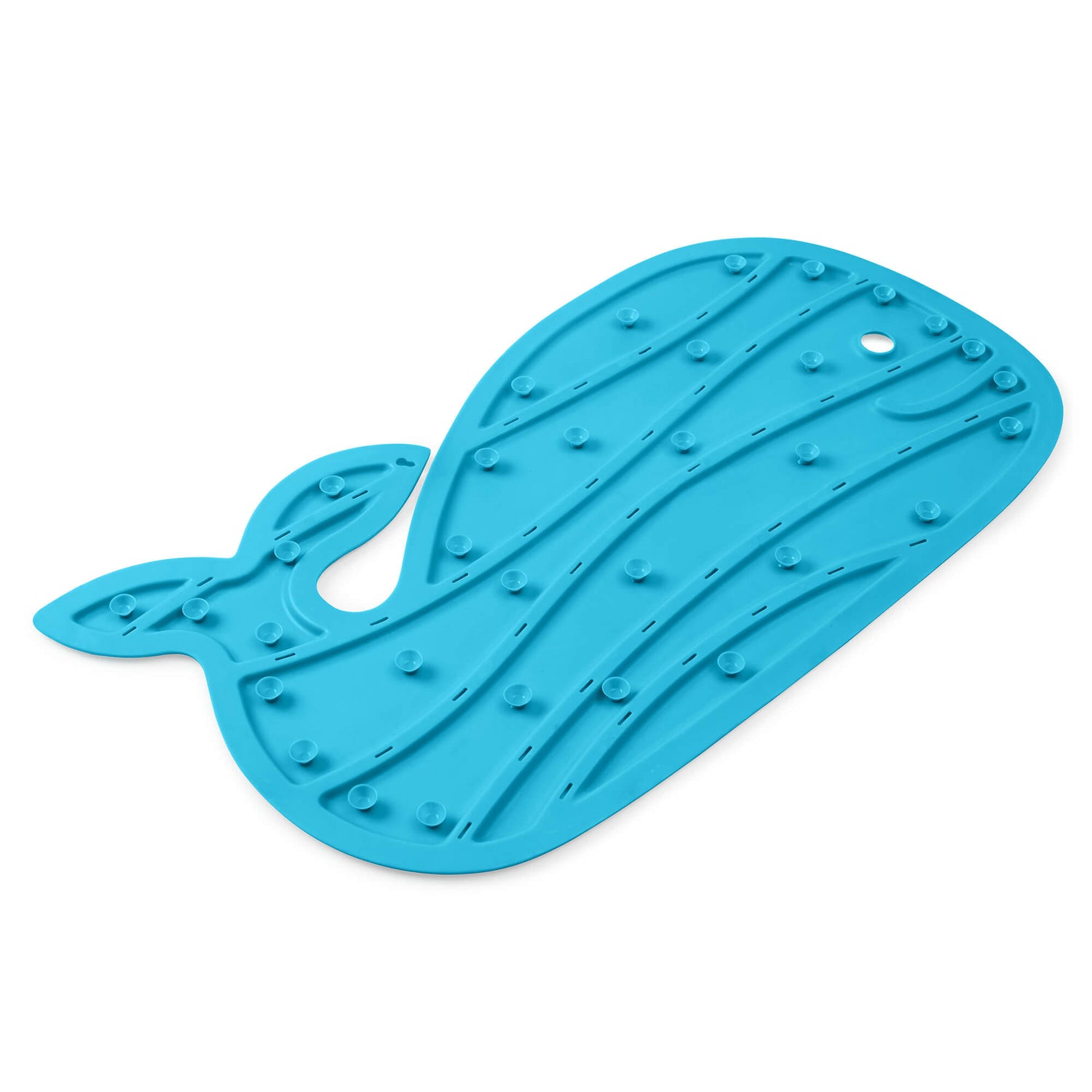 Designed with comfort in mind, our Moby Bath Mat provides a textured, non-slip surface in your little one's bath. Fun and functional, our signature whale shape Features: all-over suction cups that stay put on your smooth tub surface. Perforations for drainage also allow quick drying and help reduce mildew build-up. When tub time is done, the whale tail works as a handy hook that's easy to hang on your shower head, shower rod or towel bar.