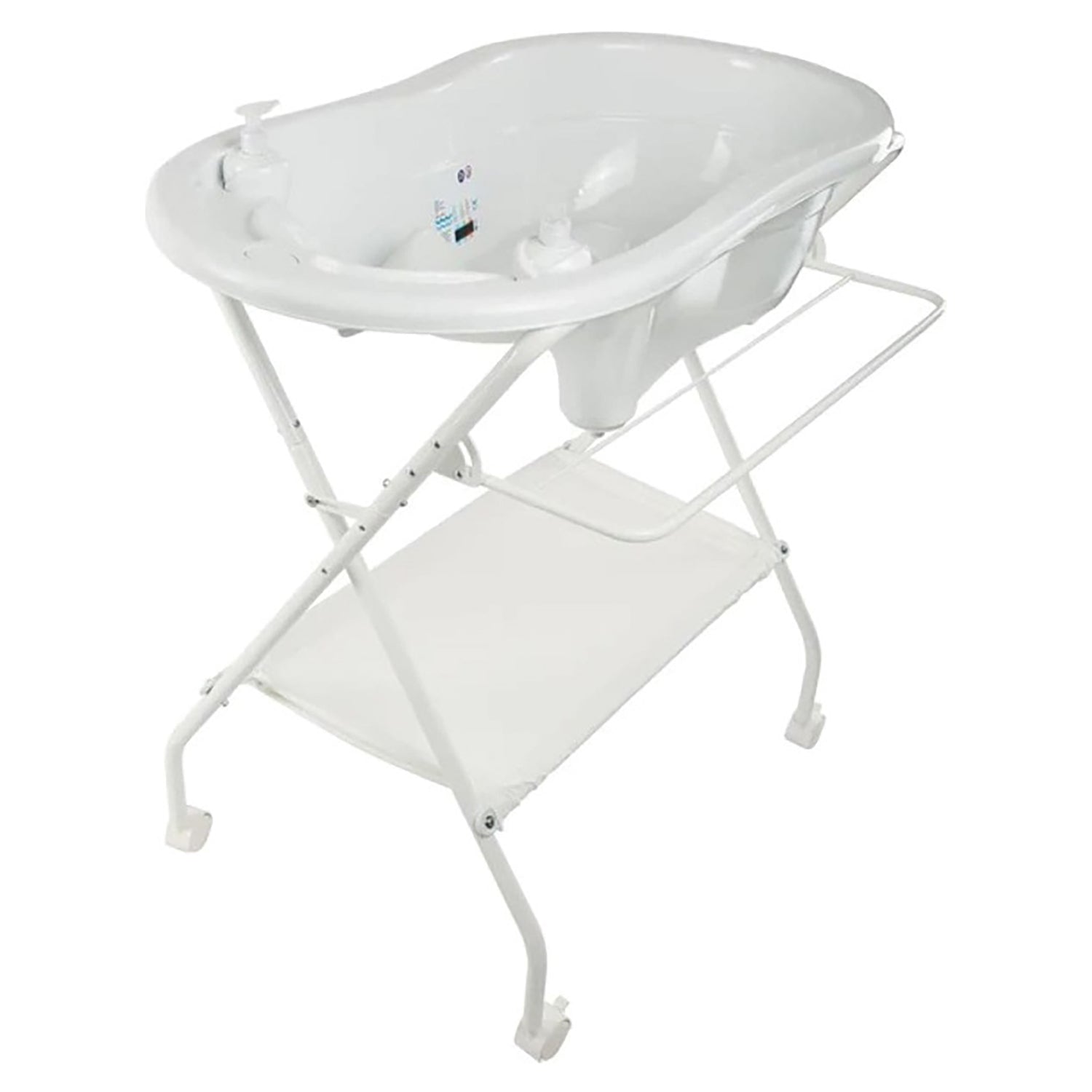 The Ulti Bath Stand is a bath stand suitable for use with the B6 Ulti Plus Deluxe Bath (sold separately). It comes complete with a vinyl accessory shelf for storing towels and a handy towel rail. Two lockable castors ensure your bath remains in place during bathing, and the easy folding action makes storage a breeze. Bathing made easier for you and your baby, designed to help prevent injury to your back.