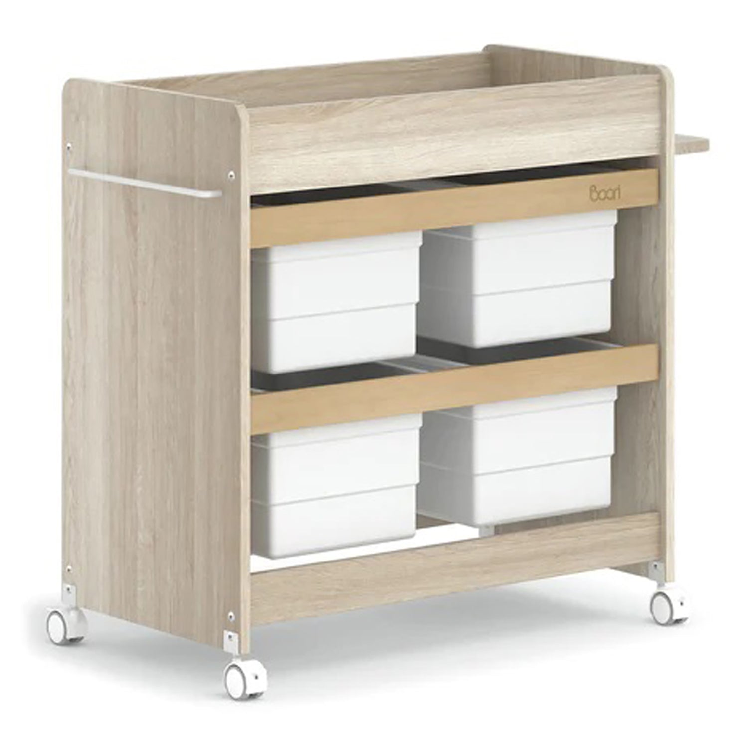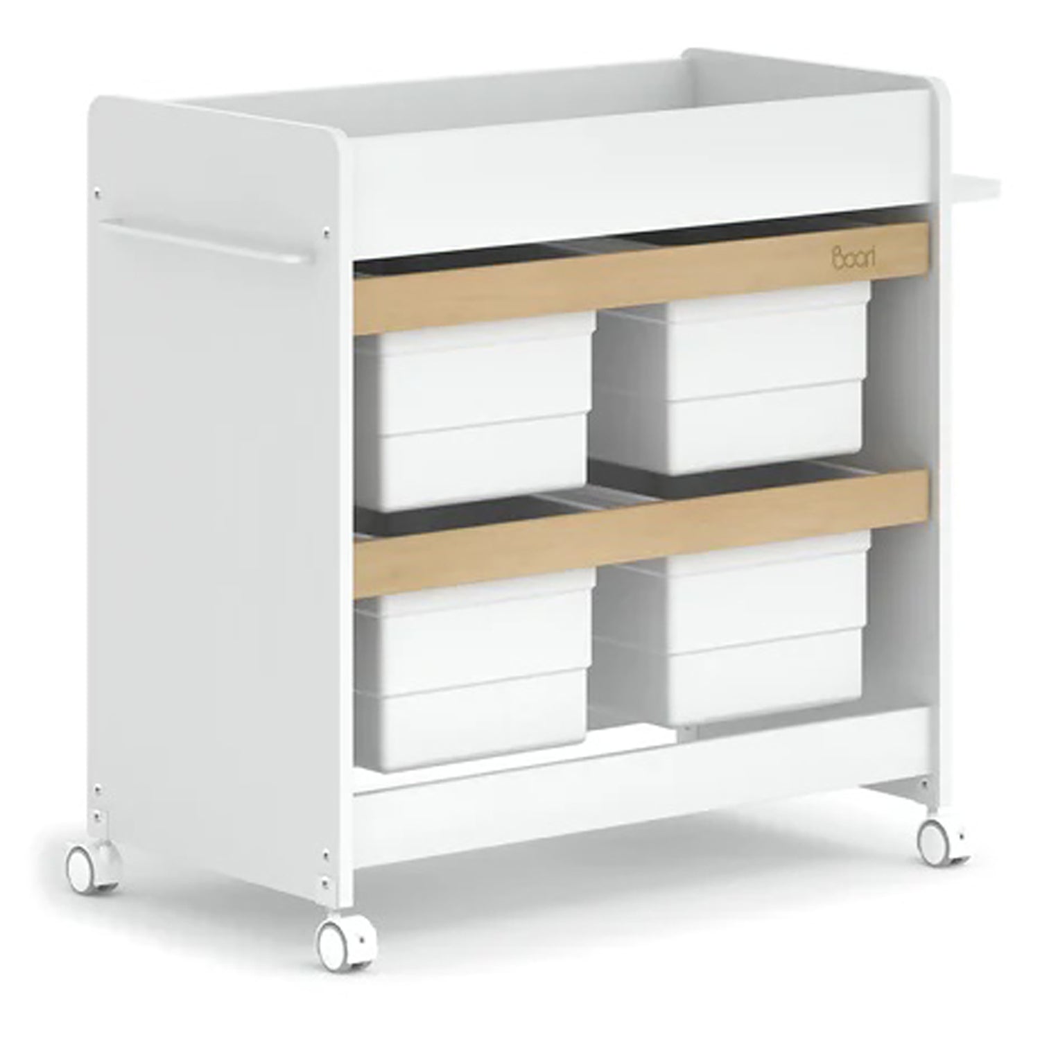 For a versatile change table that will remain useful even after your baby has outgrown nappies, the Natty Storage Changer is an excellent addition to the nursery room. Featuring four generously sized plastic buckets to store nappies, towels and other changing requirements, as well as a hanging rod, and a small shelf, this changer condenses a heap of storage into one compact and mobile unit. Wheels allow for easy mobility around the home, and can be locked when the changer is stationary. Recommended for use with the Boori Soft Lux Change pad for a comfy, fuss-free changing experience. The change table can later be used for general storage in the bedroom, laundry or playroom, providing excellent value for money, and ensuring the product remains useful as the family grows.