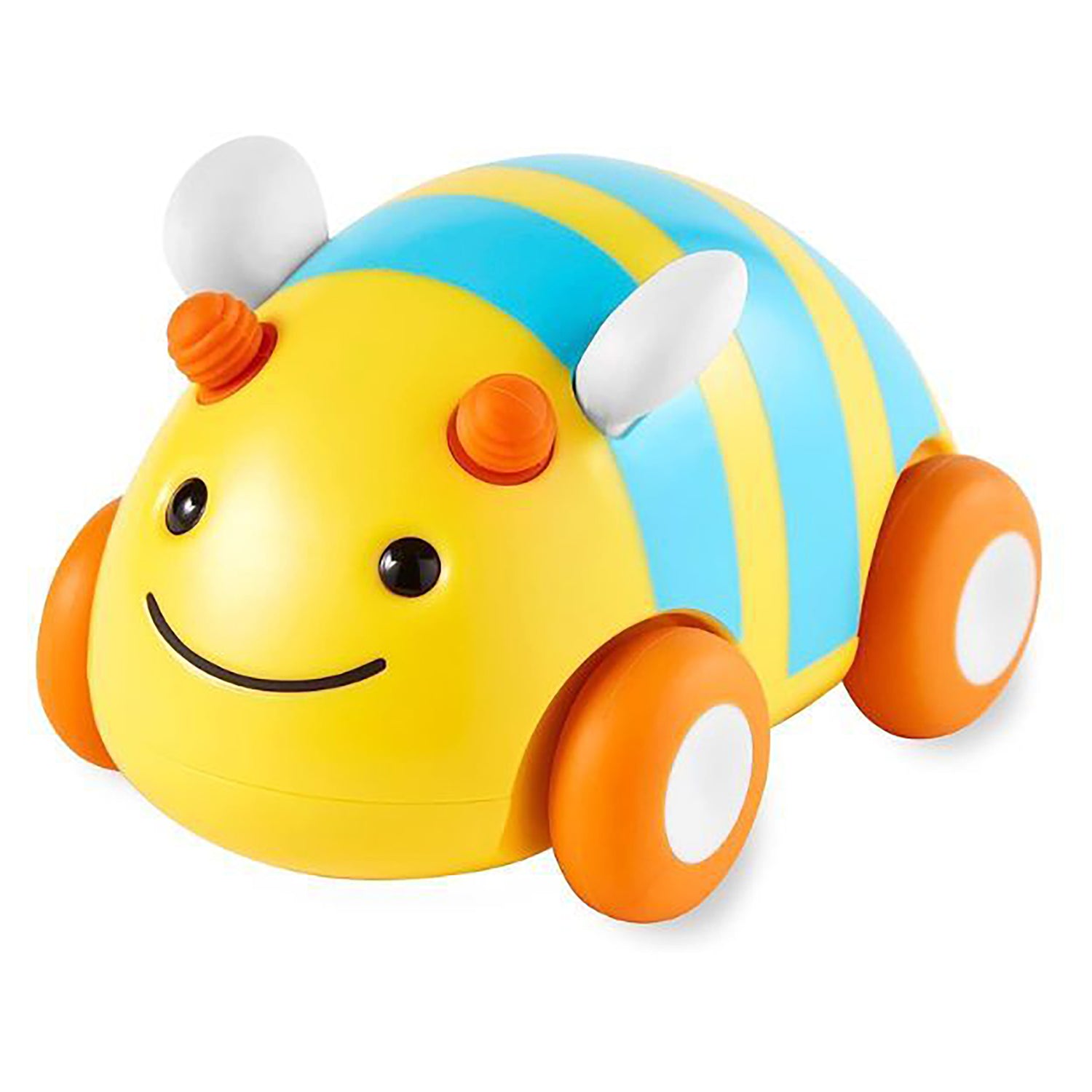 Put baby in the drivers seat with this easy-go car! Filled with bright colours and engaging textures, this cute critter on wheels encourages babys crawling adventures. Perfectly sized for little hands, just pull back and off it goes!