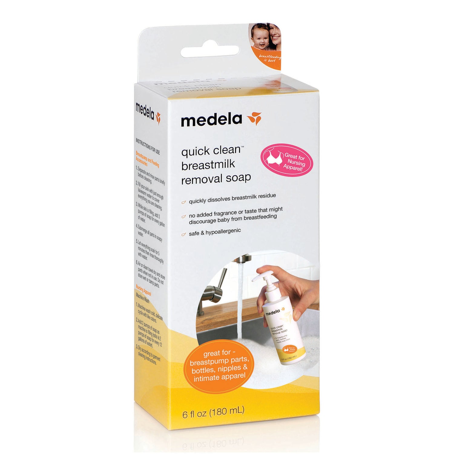 Quick Clean breast milk removal soap removes stubborn breast milk residue up to 3 days old and is clinically tested under physician supervision not to cause skin irritation. No-scrub soap is safe and hypoallergenic with no added fragrance or taste that might discourage the baby from breastfeeding.FeaturesNo scrub soap: Removes stubborn breast milk residue up to 3 days old.No added fragrance or taste that might discourage baby from breastfeeding: For breast pump parts, bottles, nipples, intimate apparel, and more.Safe & hypoallergenic: Clinically tested under physician supervision not to cause skin irritation.