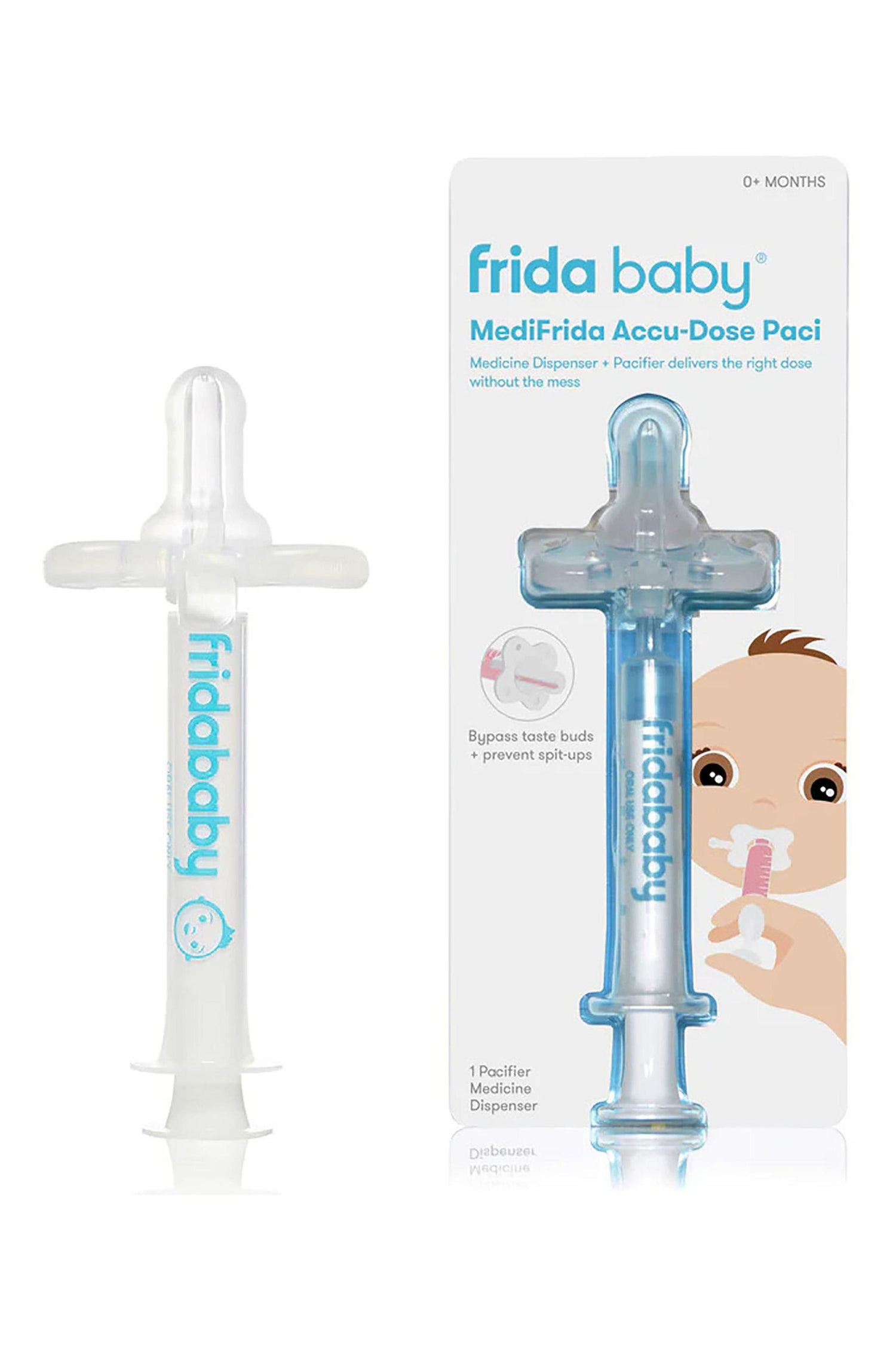 MediFrida delivers the full dose through a soft, familiar paci that sends medicine to the side of the cheek, as recommended by doctors, bypassing baby's taste buds to prevent spit-ups so baby swallows full dose. MediFrida is the only paci-style baby medicine dispenser that doubles as a real pacifier, so dosing doesn't disrupt baby's busy soothing schedule.
