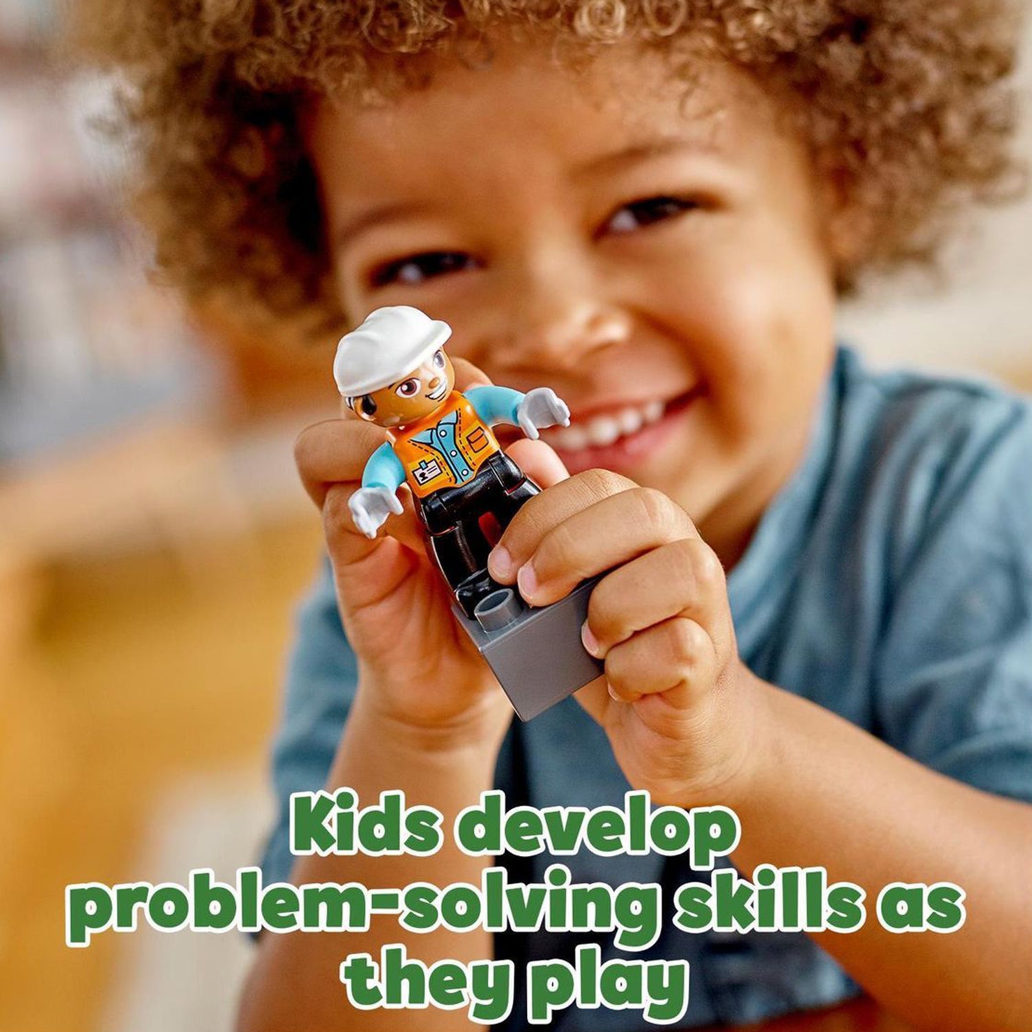 LEGO DUPLO Truck & Tracked Excavator (10931) encourages little builders to explore endless open-ended play. As they act out imaginative construction-site scenes with the toy truck, digger and 2 construction workers, toddlers develop valuable physical and cognitive skills that last a lifetime.