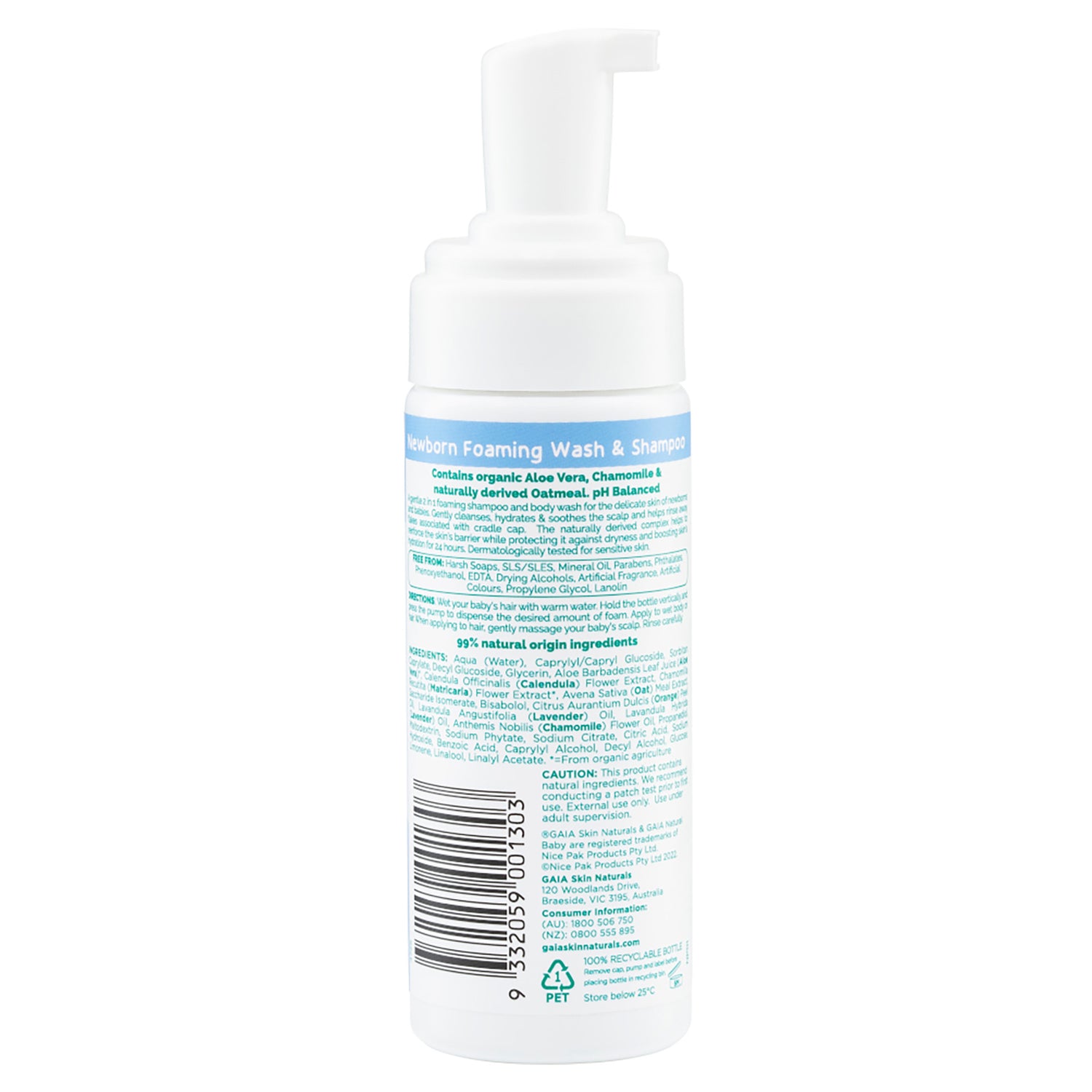 A gentle 2 in 1 foaming shampoo and body wash for the delicate skin of newborns and babies. Gently cleanses, hydrates & soothes the scalp and helps rinse away flakes associated with cradle cap. Made with 99% natural origin ingredients. The naturally derivied complex helps to reinforce the skin's barrier while protecting it against dryness and boosting skin's hydration for 24 hours. Dermatologically tested for sensitive skin. Contains organic Aloe Vera, organic Oatmeal, organic Chamomile, organic Calendula, organic Lavender, organic Ylang Ylang. FREE FROM: Harsh Soaps, SLS/SLES, Mineral Oils, Parabens, Phthalates, Phenoxyethanol, EDTA, Drying Alcohols, Artificial Fragrances, Artificial Colours, Propylene Glycol, Lanolin Vegan friendly Plant derived biodegradable surfactants Certified responsibly sourced palm oil Kind to eyes / no tears formulation