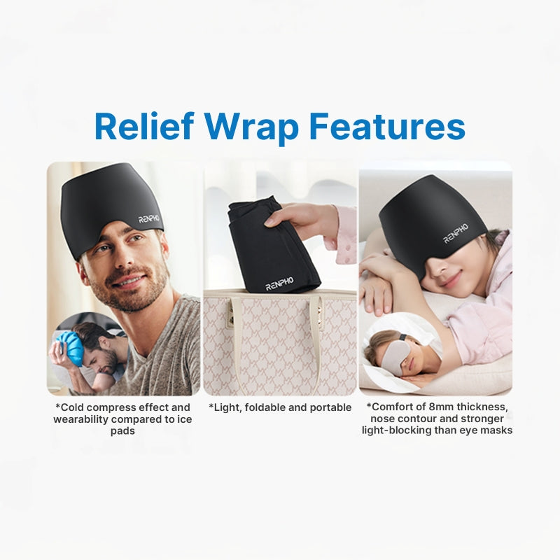 The Relief Wrap features lightweight and foldable, making it easy to carry around. Pack it in your backpack or suitcase for quick and effective relief from migraines and headaches whether you're at home, at work, or traveling.