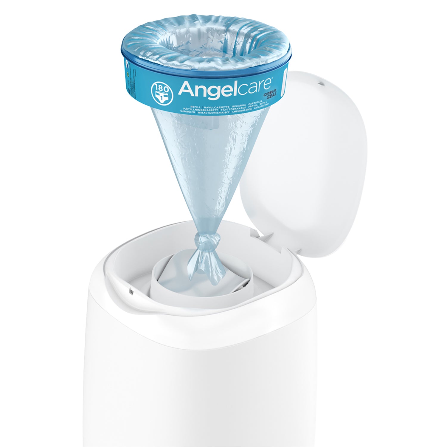 The Angelcare Nappy Disposal System is a convenient and hygienic way of disposing of dirty nappies. Hygienic Push & Lock - With the push and lock system, it's very easy to dispose of a nappy. Just push it through the clamp system and it'll disappear automatically into the multi-layer bag. Simple to use with no difficult twisting required.