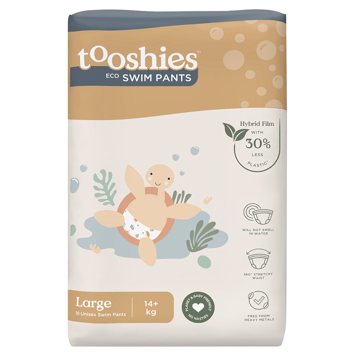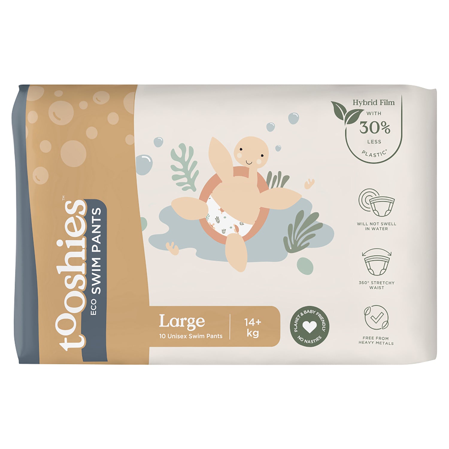 tooshies ECO Swim Pants are the most sustainable choice for disposable swim pants, when performance, comfort and caring for your baby are non-negotiables. Made with a hybrid film with 30% less petrochemicals and free from heavy metals, these pants will not swell in water and are chlorine and salt water safe. Our unisex Small swim pants feature a cute platypus print and offer a soft 360 degree stretchy waistband and simple tear off sides to pull on and tear off with ease.