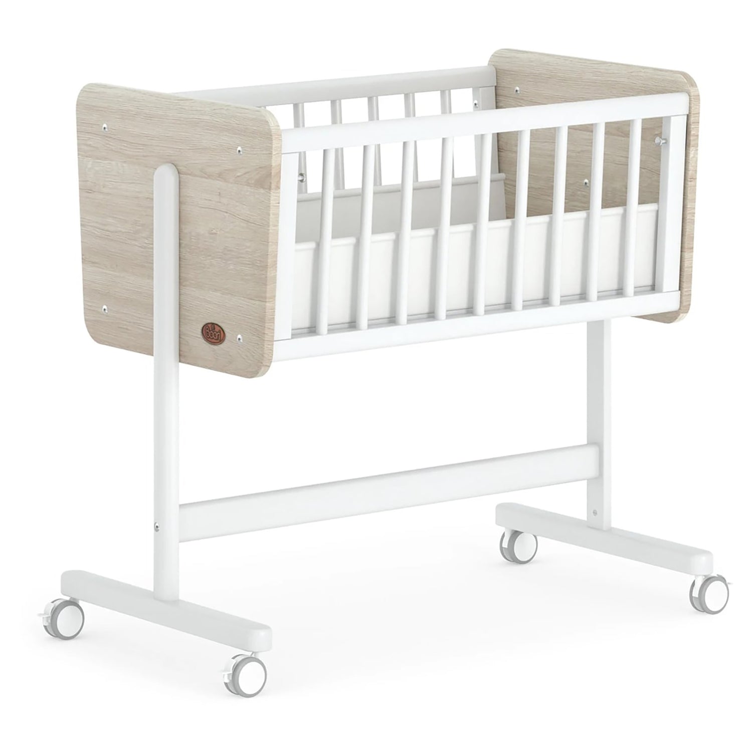 • Can be used as a bassinet or one wooden guard rail can be removed for feeding or settling baby.