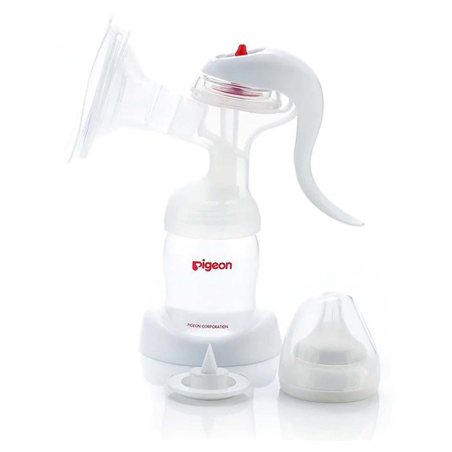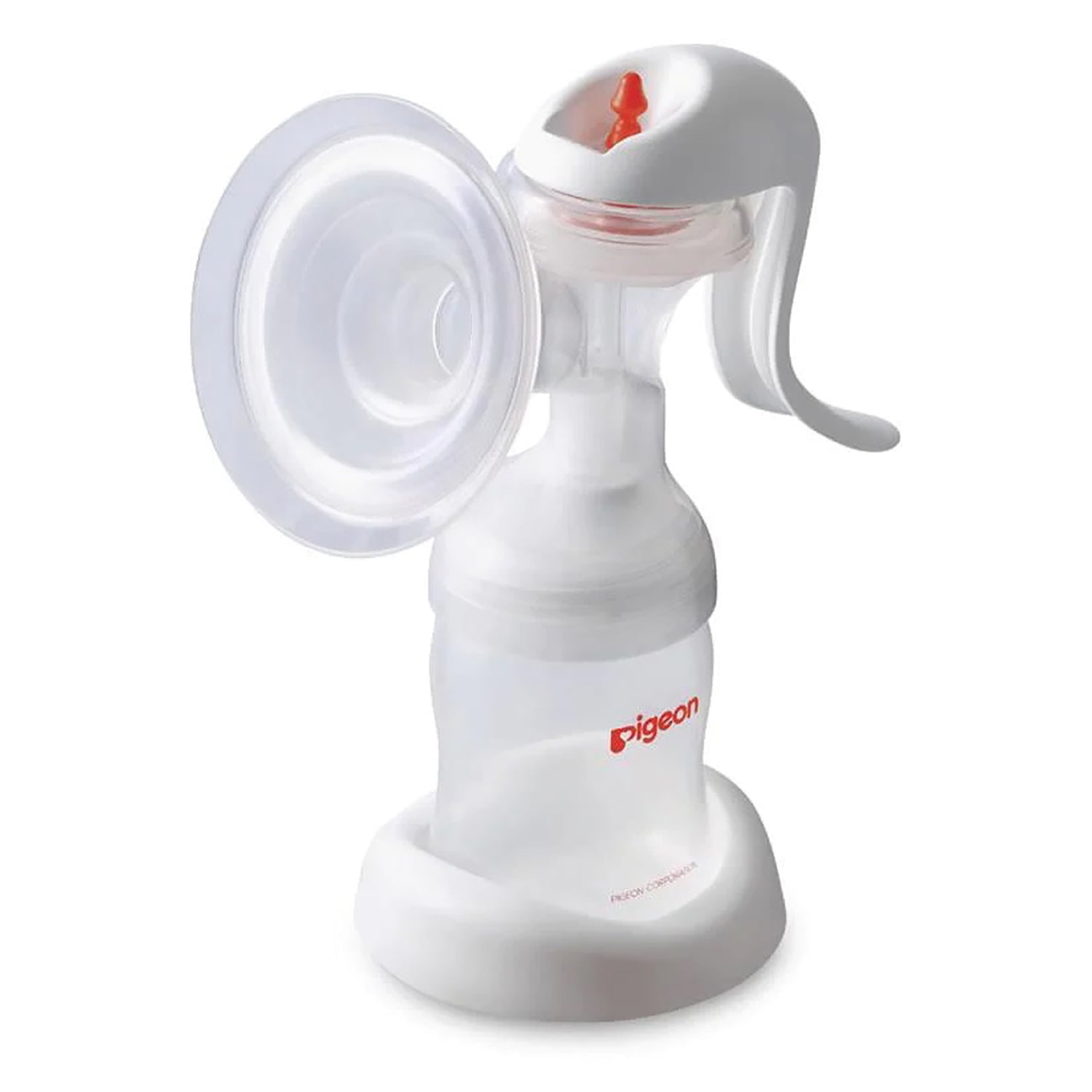 The Pigeon manual breast pump replicates the sucking pattern of your baby, at your own pace. It has a unique sealing air cushion to assist with let down, and fewer parts to help with cleaning. The pump provides strong suction, but the act of pressing requires minimal strength all thanks to the ergonomic handle that reduces hand fatigue for comfortable and easy pumping.