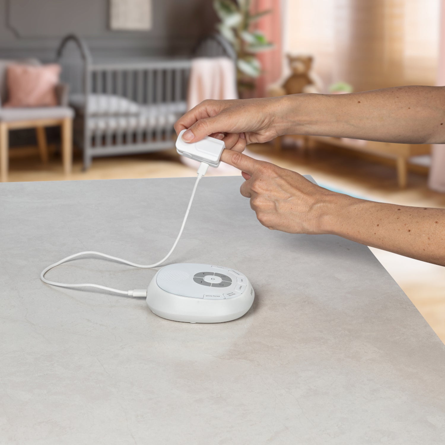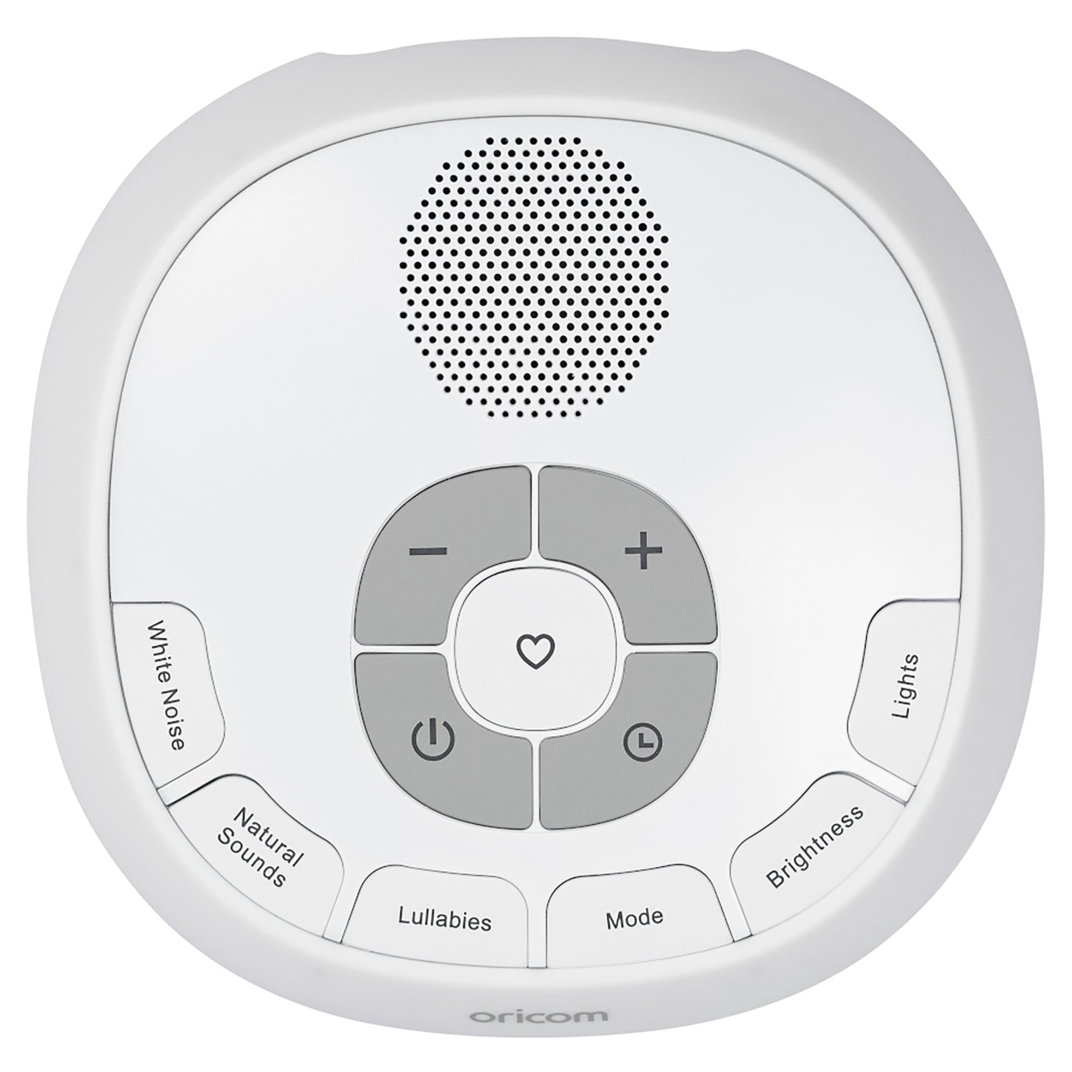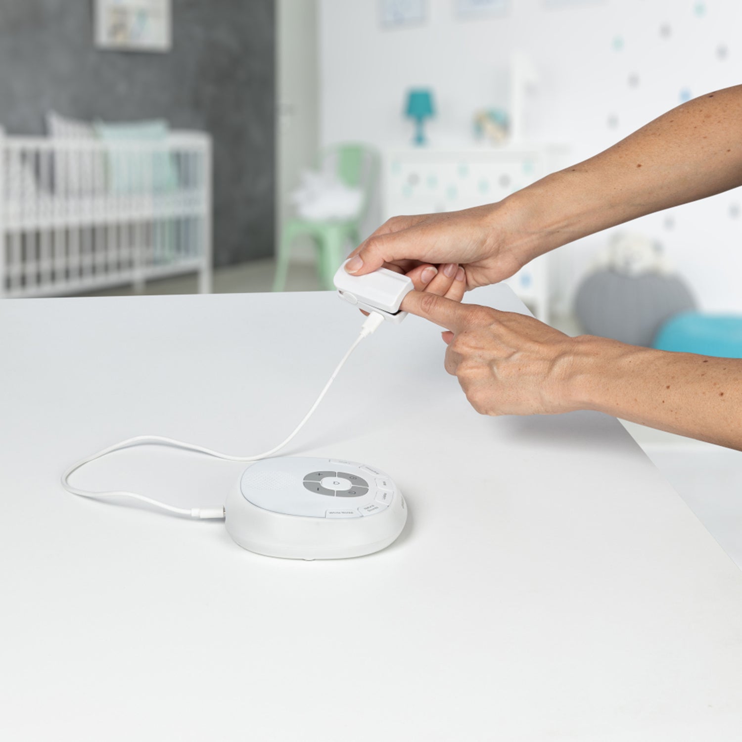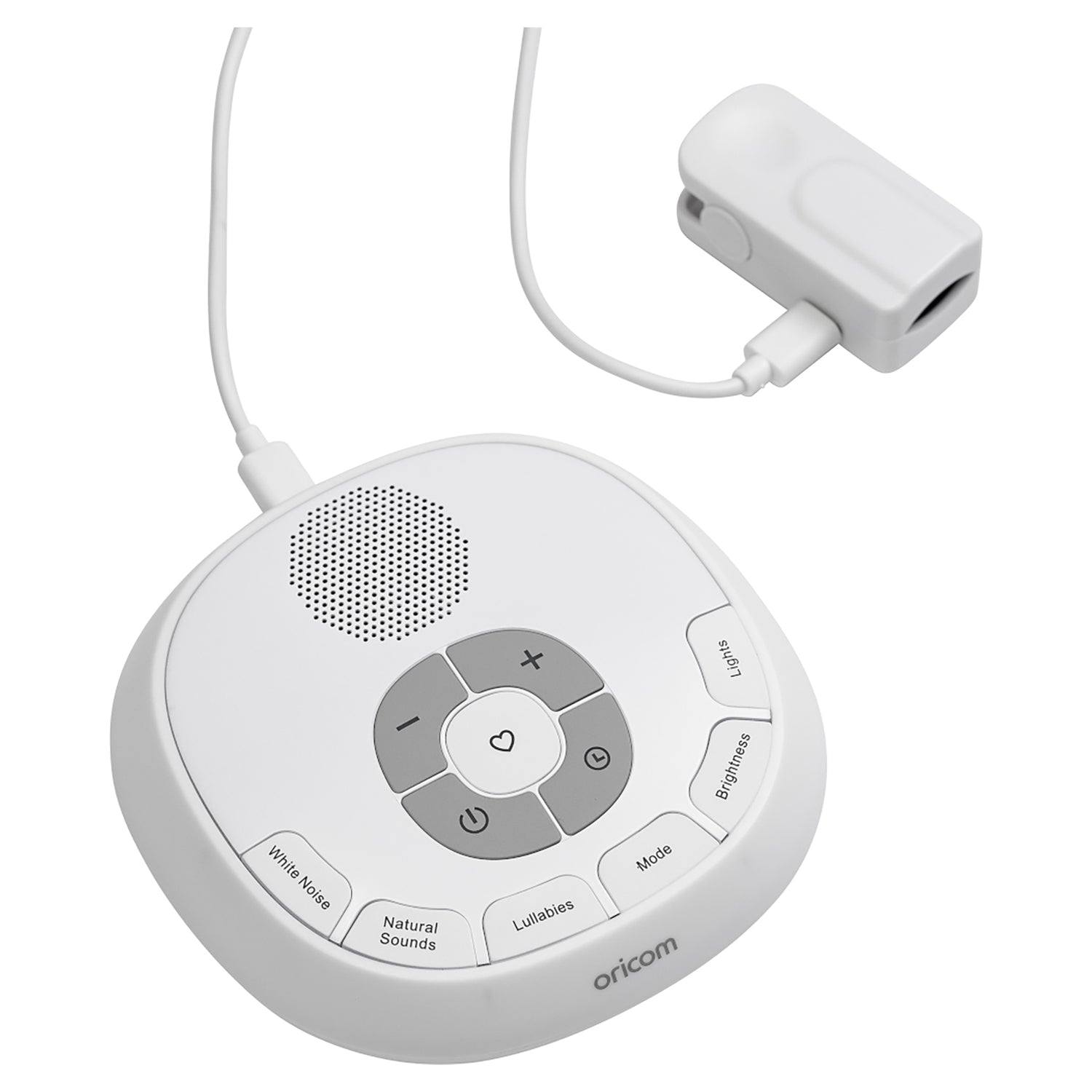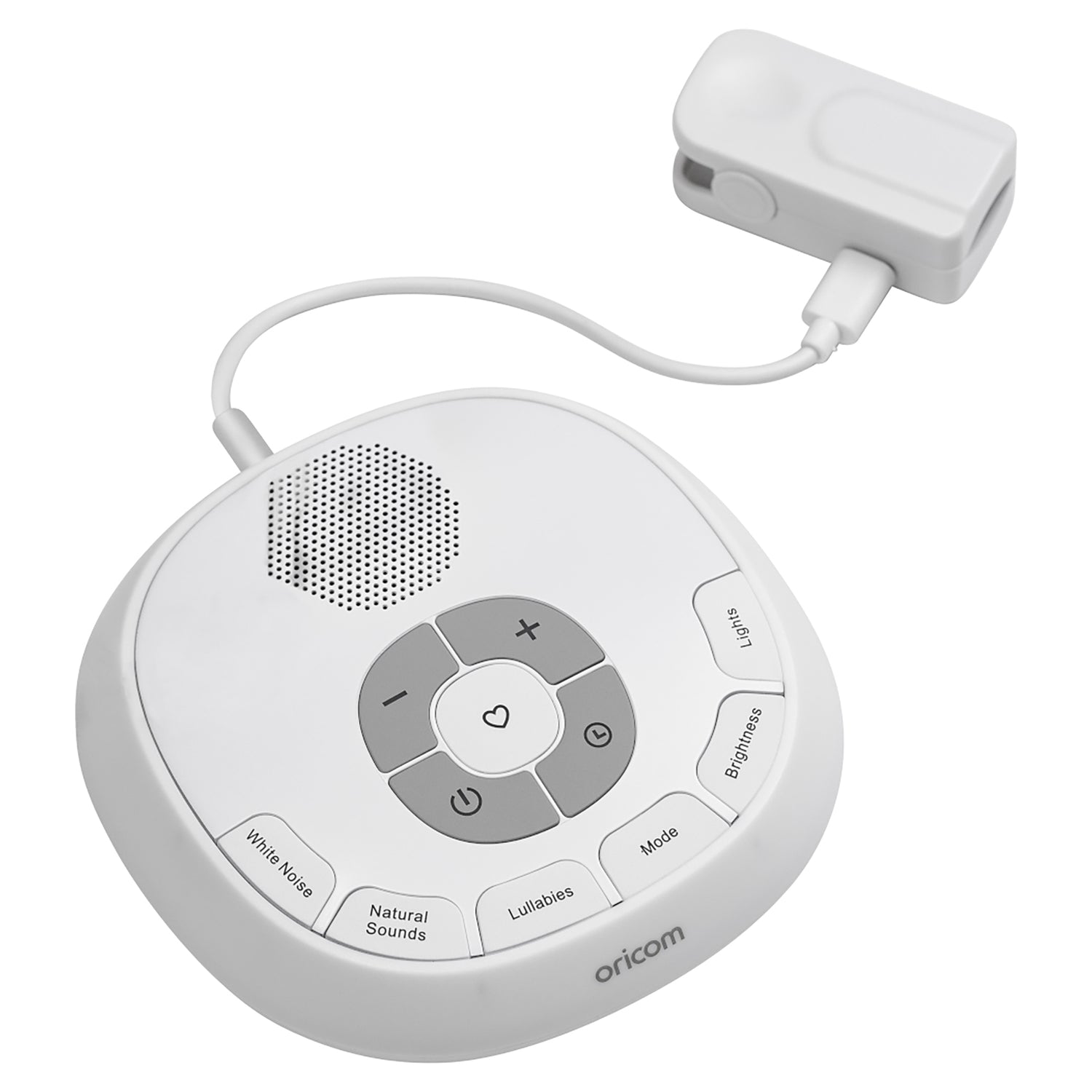 The OLS150 Sound Machine is an all-in-one solution for creating a soothing nursery environment. With its unique finger sensor, parents and guardians can record their own heartbeat to replicate the comforting sound that babies hear inside the womb. Additionally, the device offers a selection of 20 soothing sounds, including lullabies, white noise, heartbeat and nature sounds. The multi-colour night light further adds to the calming atmosphere, helping your child relax as they drift off to sleep.