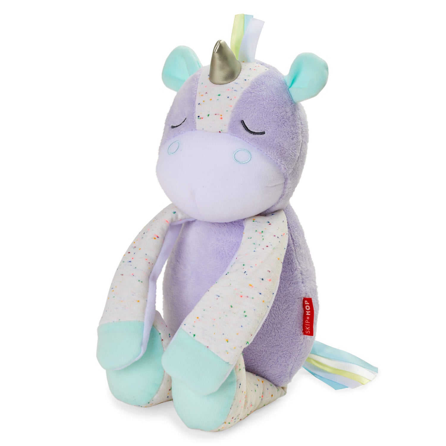 Soothe baby with sweet songs, nature sounds and your recorded voice-even in the middle of the night! This soft bedtime friend Features: an innovative cry-activated smart sensor that automatically responds to cries so baby and parents get a good night's sleep. Easy to attach to the crib, it's also a cinch to set and customize-a voice recording option lets mom and dad comfort baby no matter where they are. As baby grows, it becomes a huggable friend for toddlers.