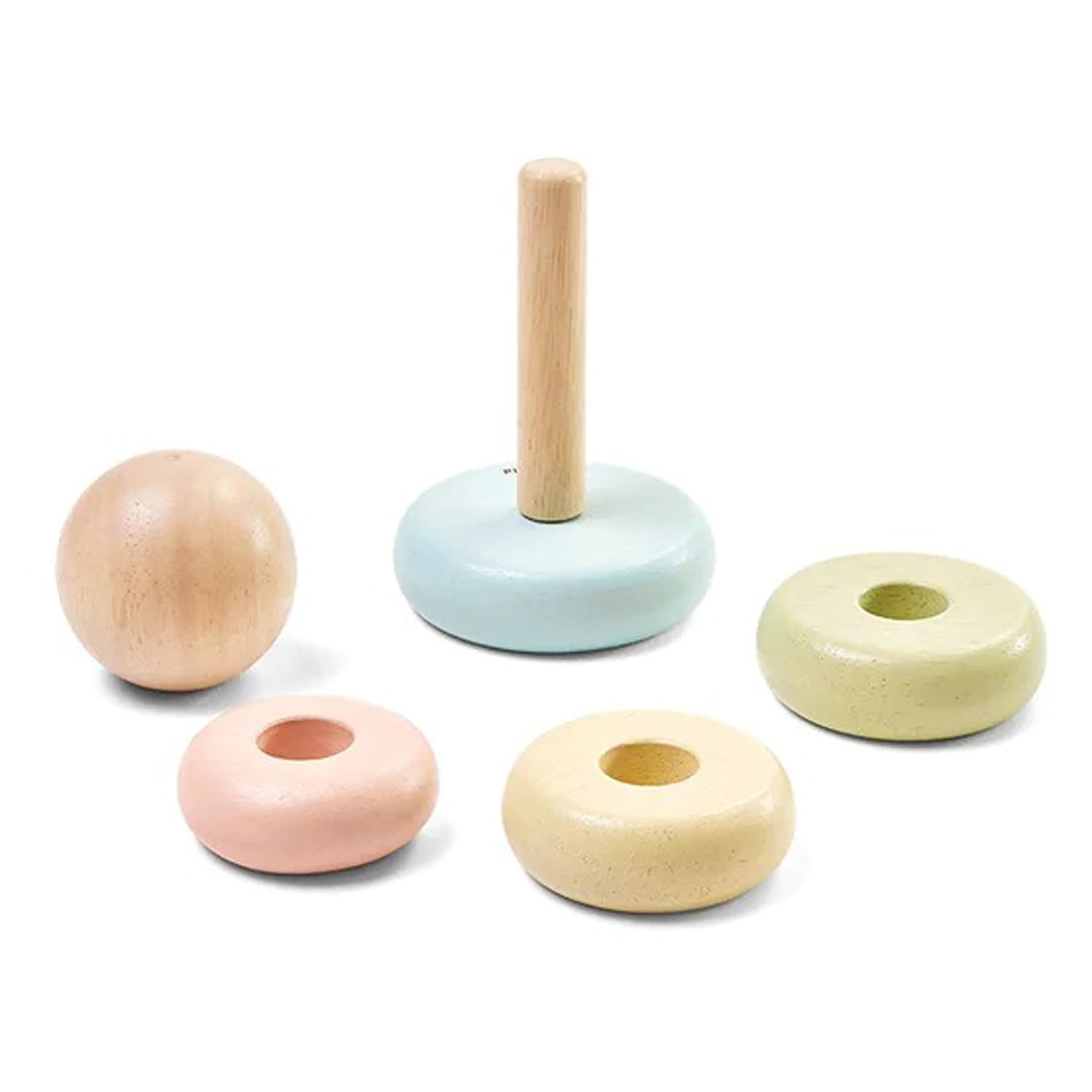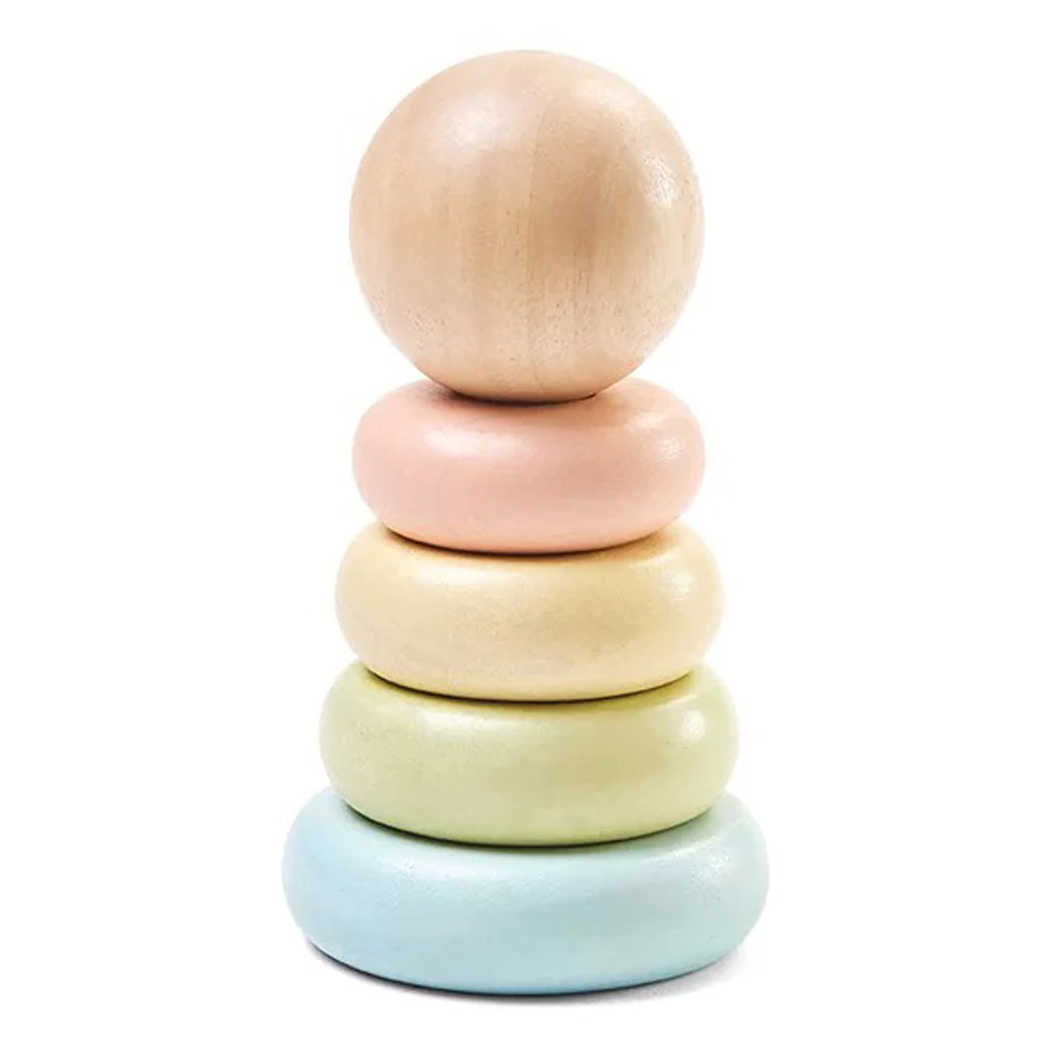 Start learning about size and order with this stacking ring. For safety precautions, the center rod is foldable.Includes1 base, 3 wooden rings, and 1 ballDevelop early fine motor skills and start learning how to differentiate between various sizes and colorsFor advanced play, time your child as they stack each ring properly!Sustainably made in Thailand using chemical-free rubberwood, formaldehyde-free glue, organic pigments, and water-based dyes.
