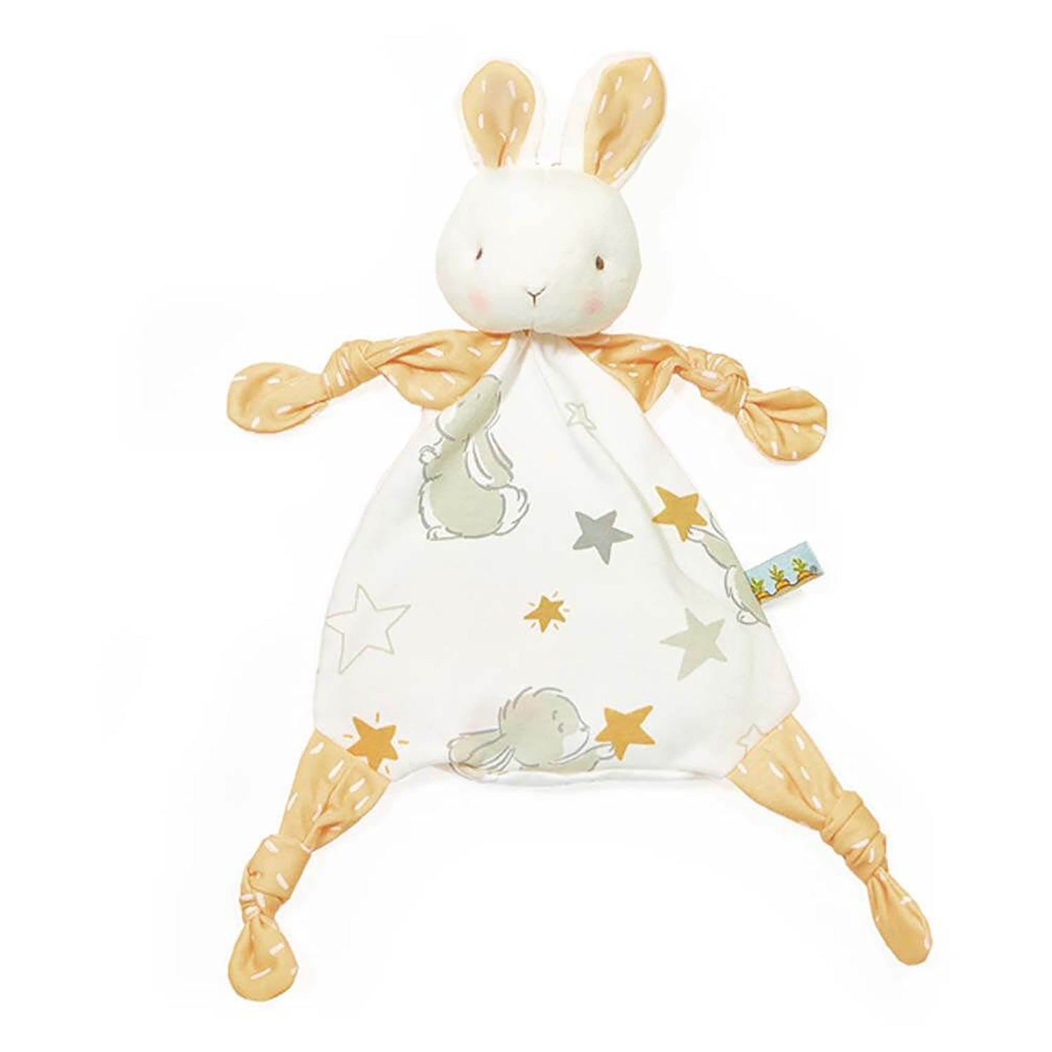 This Little Star teether is super soft and cuddly with a sweet embroidered bunny face. A lovey and pacifier holder in one, their arms and legs are tied in knots for handy chewing and soothing. You can also untie the knots and slip on a pacifier. Multiple textures for soothing and developing babies senses. Machine washable.