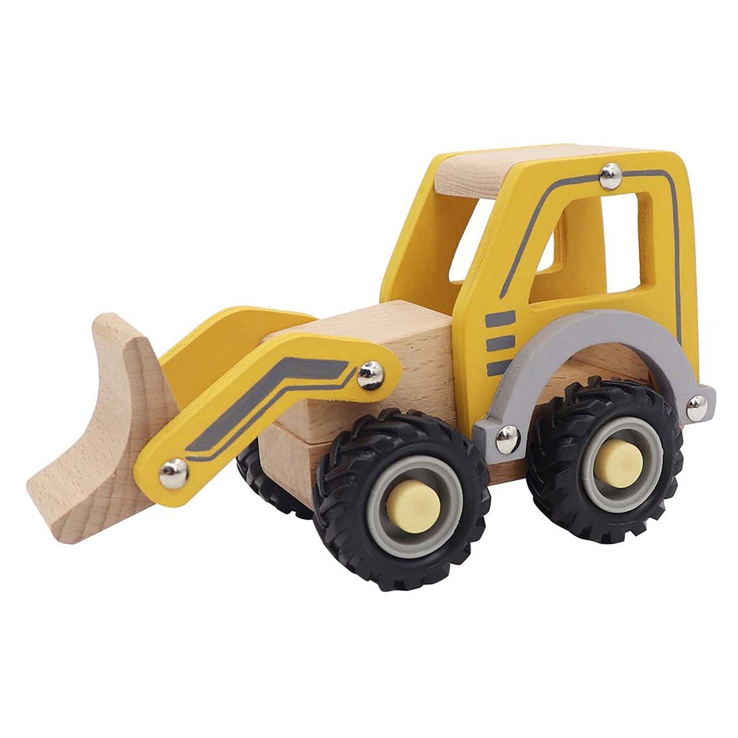 A Bulldozer to plough away all the rubbish! This sturdy wooden bulldozer Features: rubber wheels to protect surfaces and will put up with the rough and tumble of child's play. Made to a high quality finish, this truck is made with natural beech wood and non-toxic paint. Suitable Age: 18 Months +