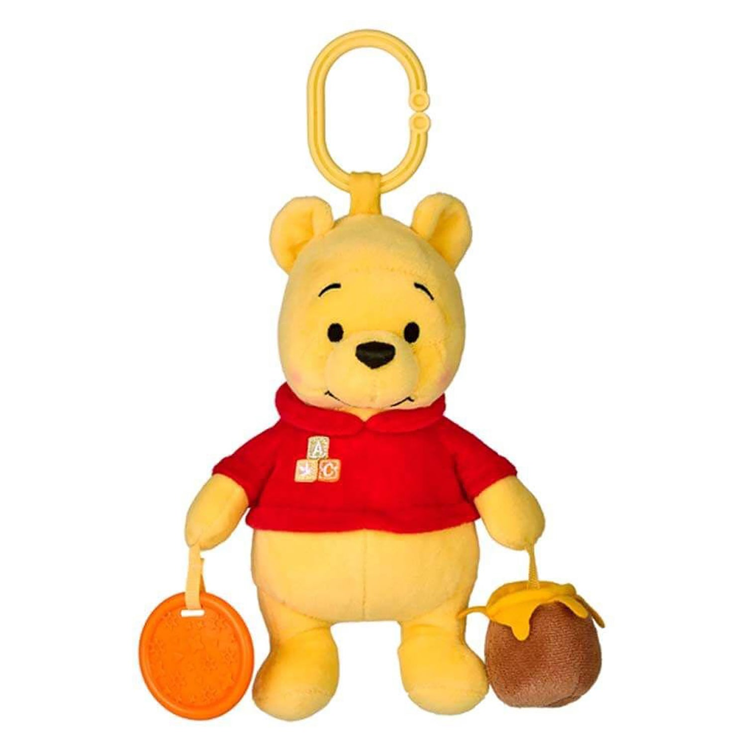 This delightful Winnie the Pooh Activity Toy is a developmental toy that baby is sure to love. Featuring multiple fun and interactive textures, this charming toy is sure to entertain baby while aiding in the development of their senses and fine motor skills. Instantly recognisable with his red t-shirt and honey pot, Winnie the Pooh's soft fabric body is just the right size for little hands to grasp. The attachable clip makes Winnie the Pooh the perfect travel pal for adventures on-the-go.