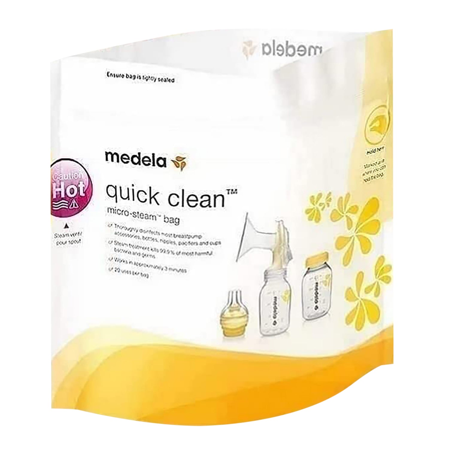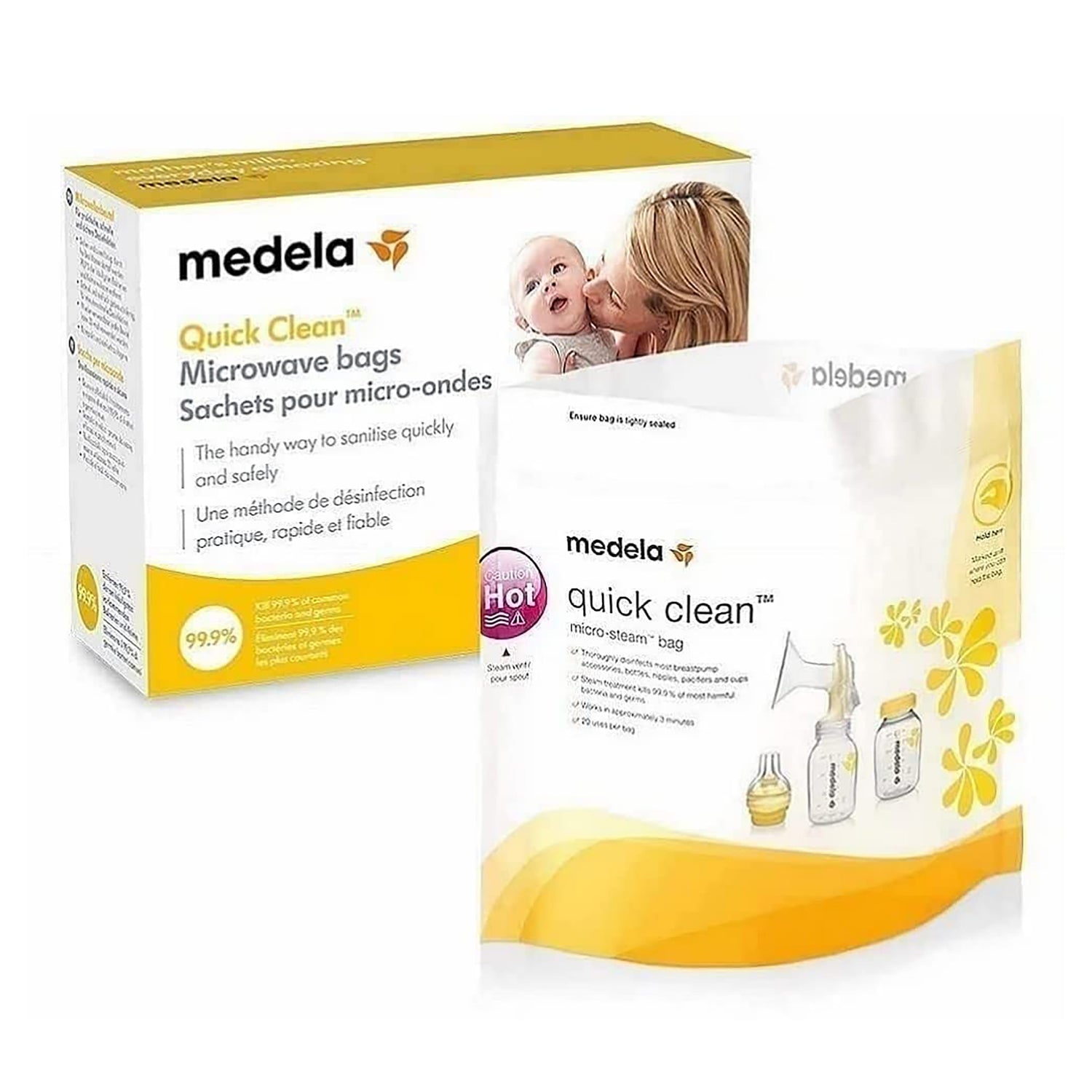 Quick clean microwave bags are a handy way to sanitize pumping equipment and breastfeeding accessories quickly and safely.With Medela Quick Clean Microwave Bags you can disinfect breastfeeding accessories in around three minutes - it is faster and easier than boiling. This eliminates 99.9% of the most harmful bacteria and germs.Features:Safe and reliable steam treatmentEliminates 99.9 % of common bacteria and germsEasy and quick: ready to use, works in minutesRe-usable: each bag can be used 20 timesSmall and easy to storeBPA free