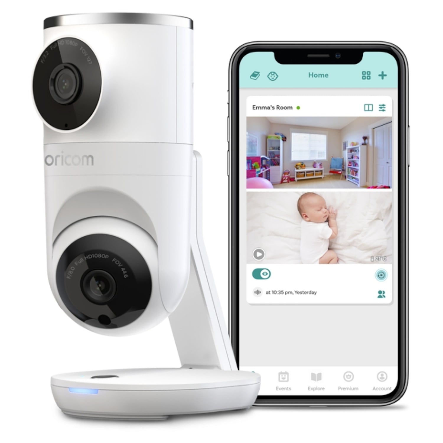 The Latest Innovation in Baby Monitoring is here. Introducing the Oricom HD Dual Vision camera, the smart baby monitor which features dual lenses for standard and wide-angle viewing, from the same device. Simply pair the camera to the FREE HubbleClub for Partners app (available on the Apple App store and Google Play store), and you can view both feeds simultaneously on your smart device. Baby monitors are no longer just for parents Lull your little one to sleep with pre-loaded nature sounds, lullabies & audiobooks, soothe them with your familiar voice using Two-Way Talk, and even track nursery room temperatures with the touch of a button to ensure your newborn is always comfortable.