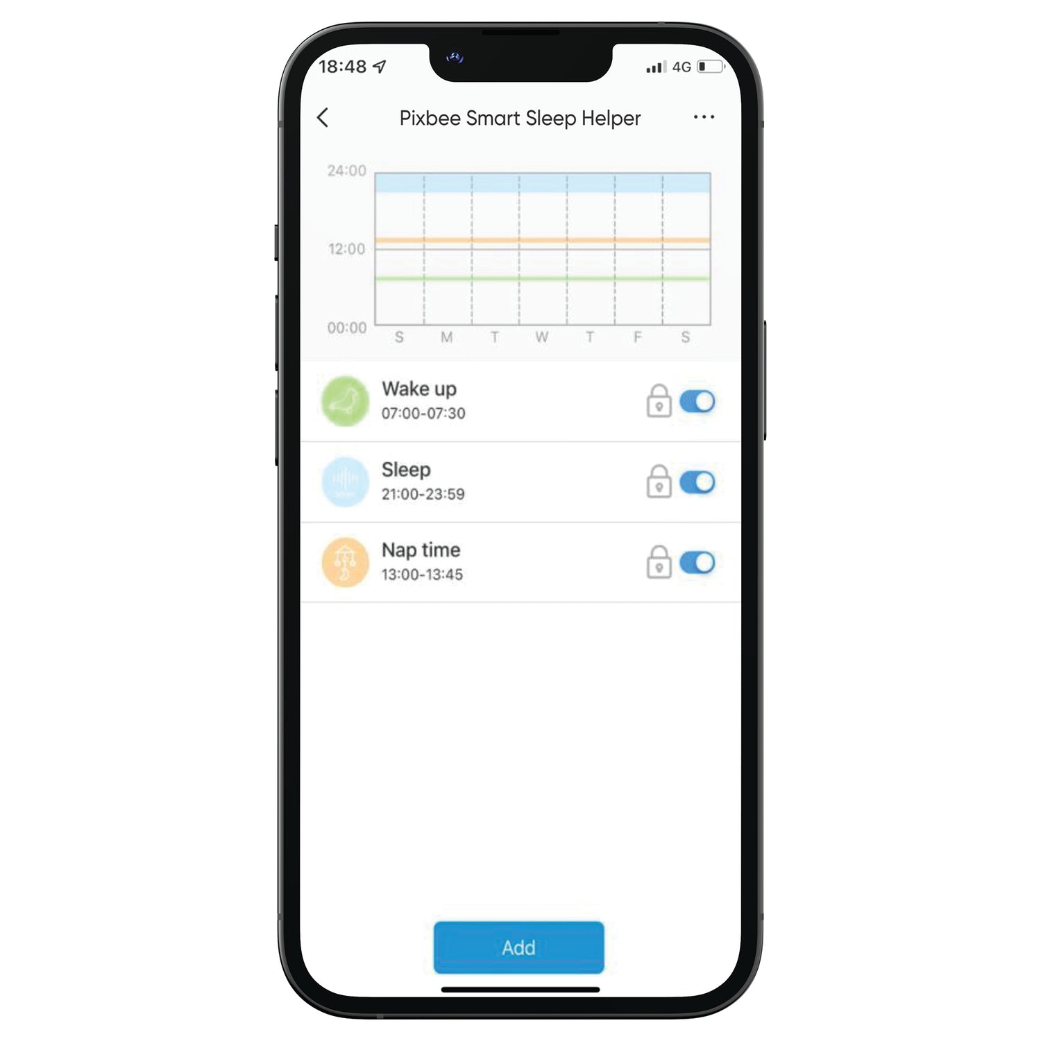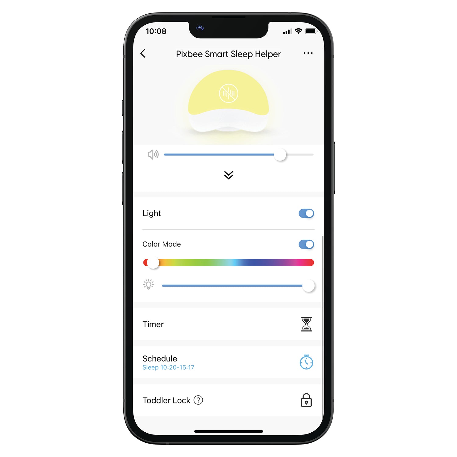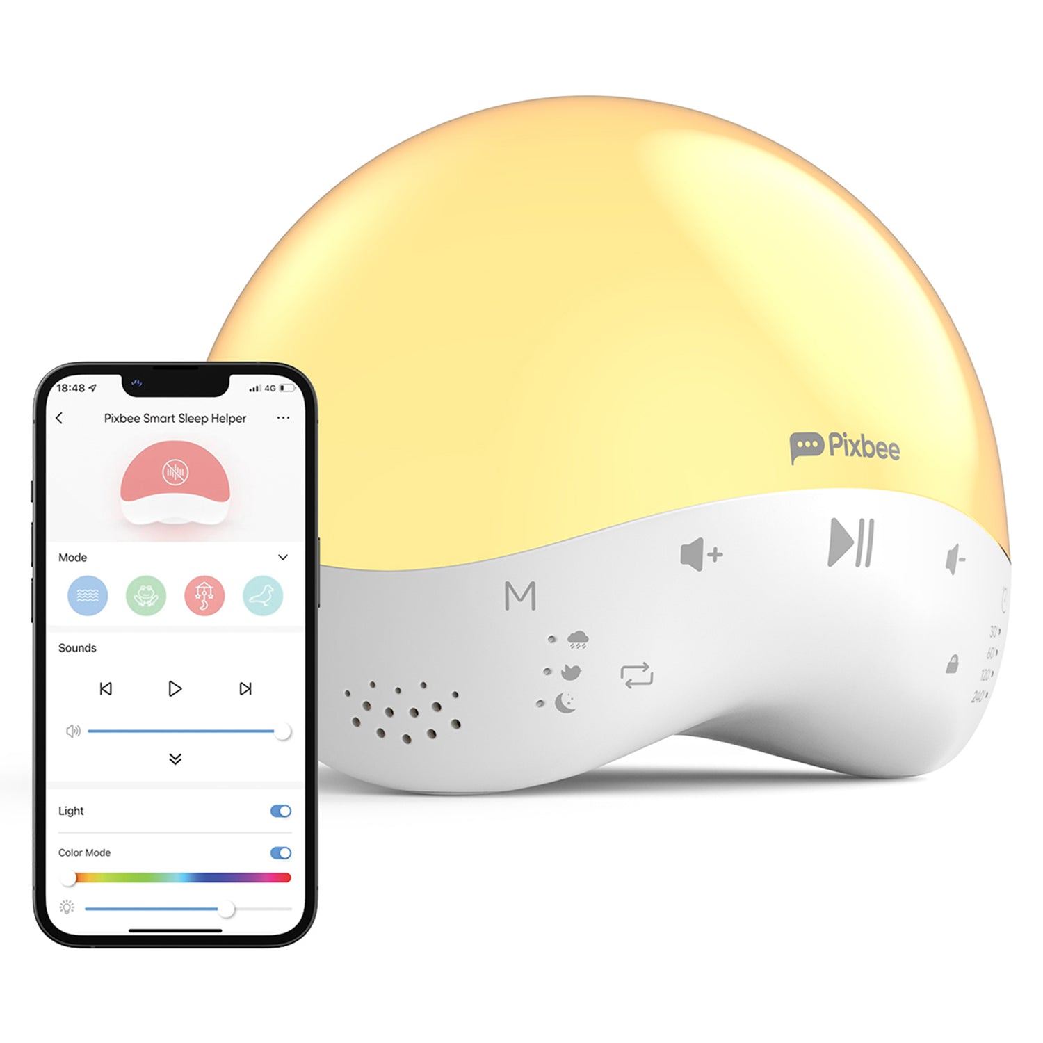 With the Pixbee resti Smart Sleep Helper, you can set various alarms and adjust light settings with the device or through the app to help your little ones recognise all the right signals for a good sleep.