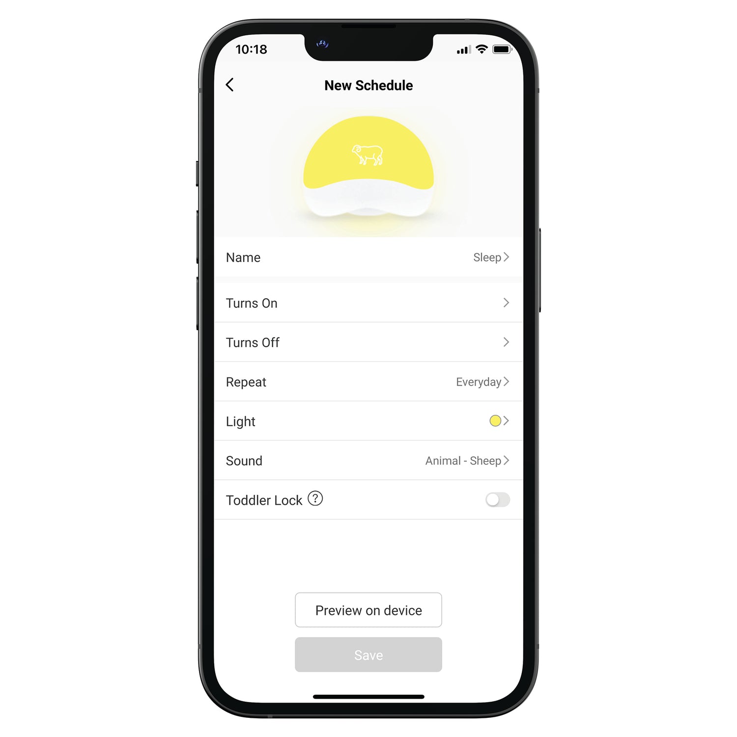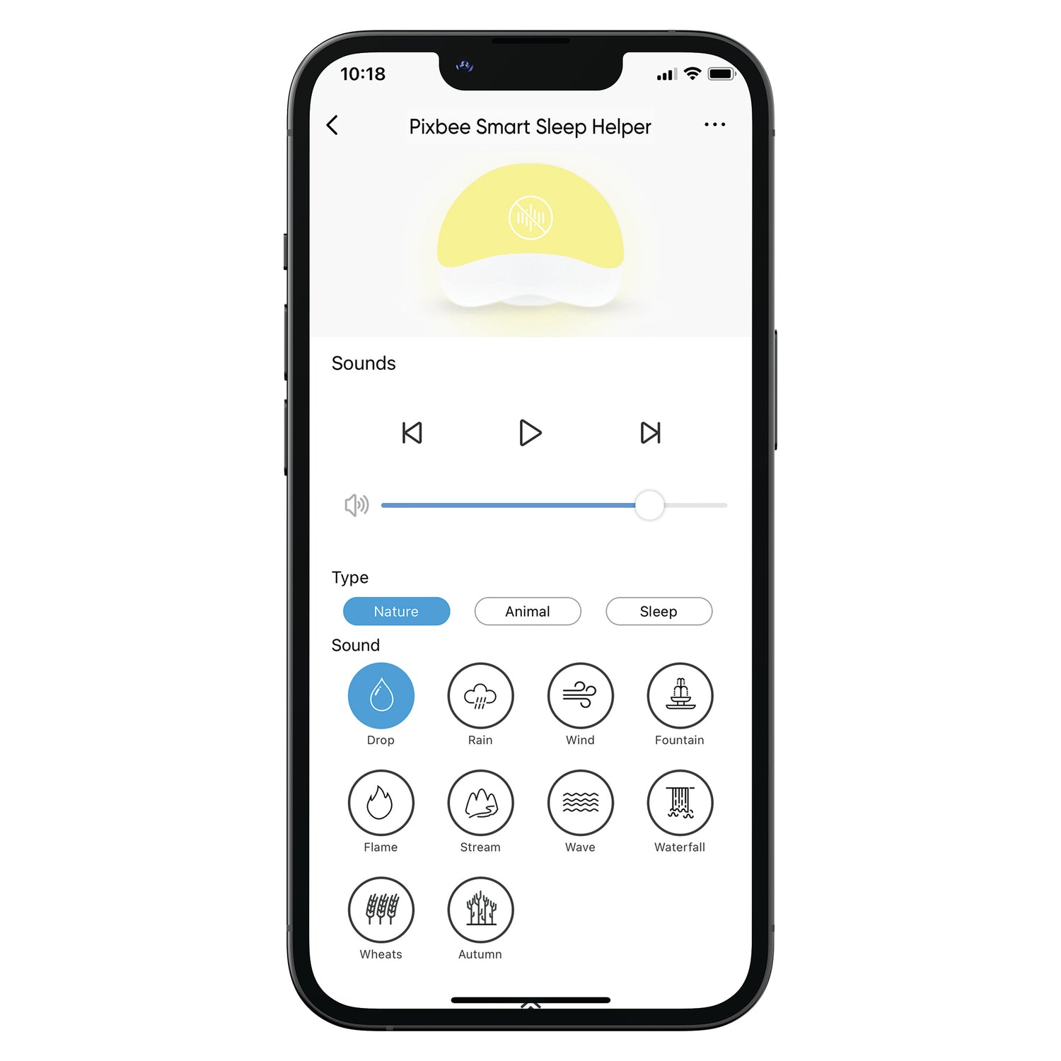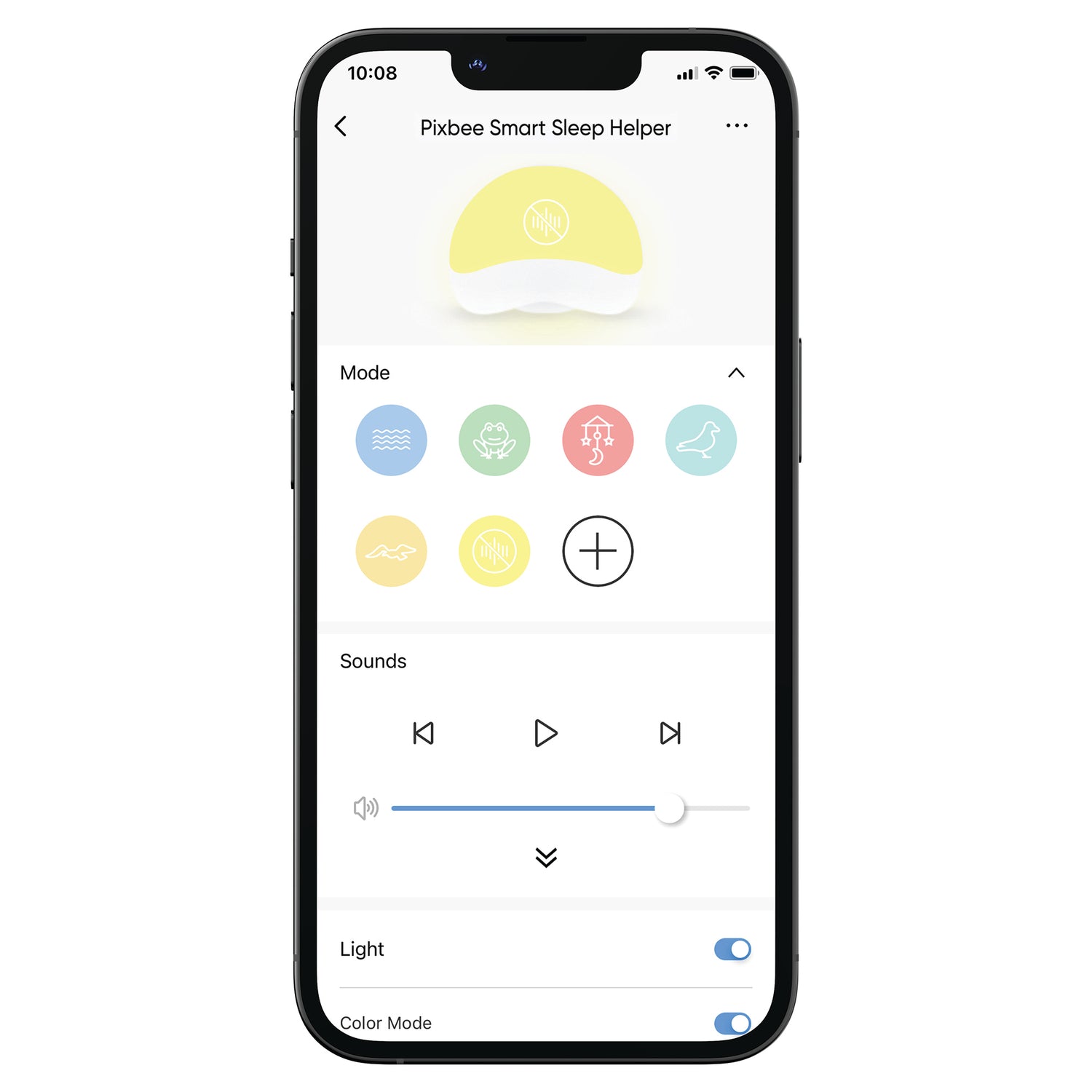 With the Pixbee resti Smart Sleep Helper, you can set various alarms and adjust light settings with the device or through the app to help your little ones recognise all the right signals for a good sleep.