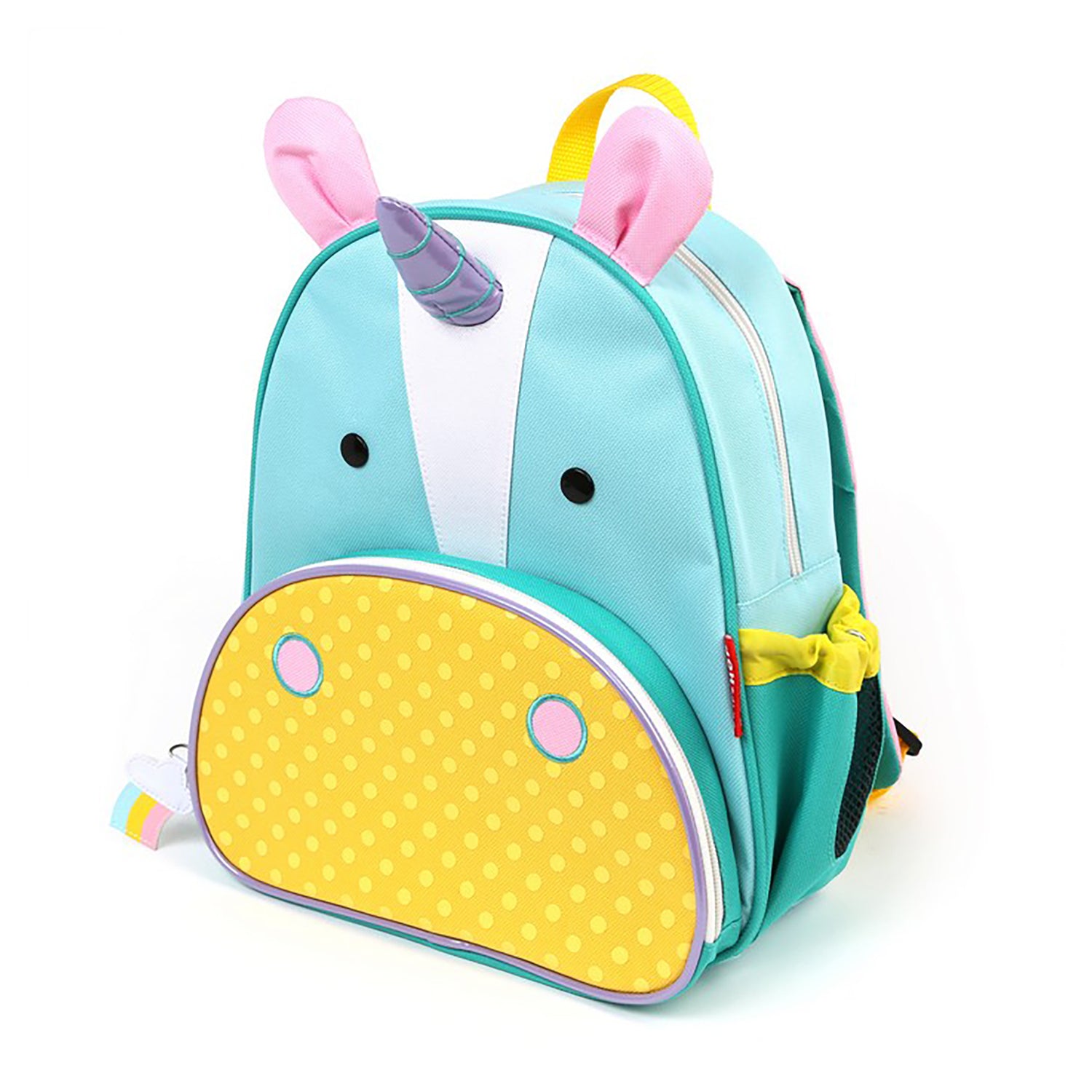 Whimsical details and durable materials make this animal backpack the perfect pack for on-the-go! Mesh side pocket adjusts to fit a juice box, sippy cup or water bottle. The front pouch is ideal for snacks and includes extra pockets for pencils and other travel necessities. Comfy padded straps go easy on little shoulders!