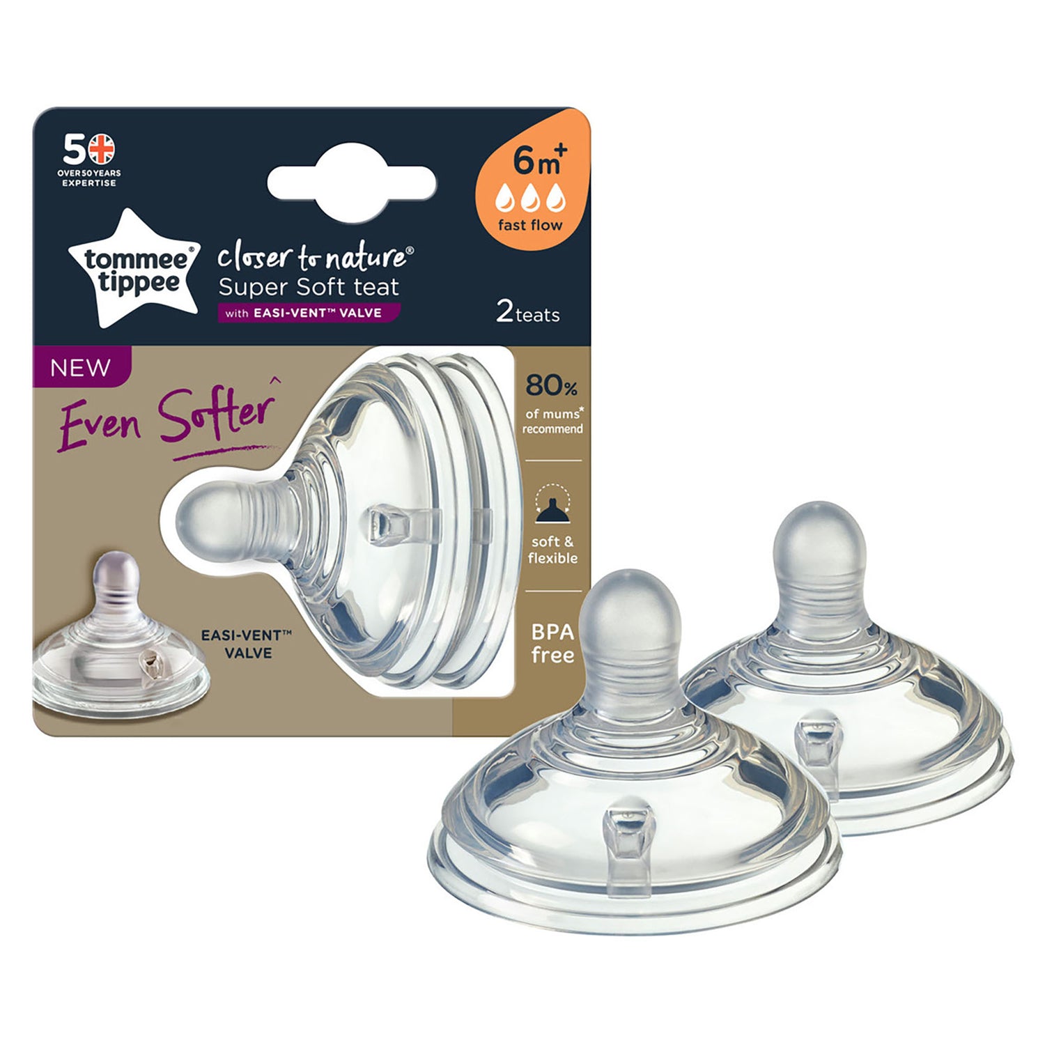 Tommee Tippee's super soft silicone, easy latch-on teats with patented ripple design have been designed with breastfeeding experts to mimic the natural flex, stretch, and movement of a mum's breast. Made from super soft, resilient silicone, these baby bottle teats have a matt texture that feels closer to the skin for complete comfort at feeding time.These baby bottle teats feature an easy-vent valve that reduces excessive air flow, so little ones ingest more milk and less air, preventing symptoms of colic. Together with the bottle's sensitive valve, the wide bottle neck encourages your baby's intuitive feeding action. Designed to be held in the most natural position during feeding, the compact shape of the bottle also allows the baby to be closer to you.Features:Our Closer to Nature teats feature an Easi-Vent anti-colic valve that reduces excessive air flow, so little ones ingest more milk and less air, preventing symptoms of colicTommee Tippee super soft teats are available in different flow rates to keep up with your growing babyAlways BPA and phthalate-free for ultimate reassurance
